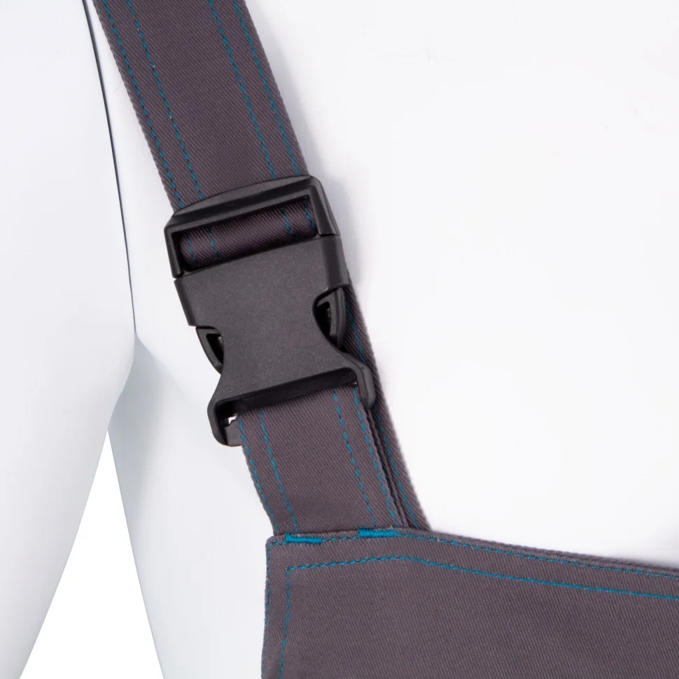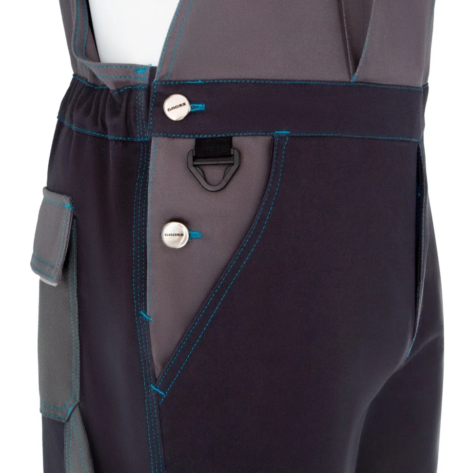 Полукомбинезон Gross 90375 размера XXL, 97% хлопок, 3% спандекс, защищает рабочего от производственных загрязнений и мелких травм. Используется в теплое время года и в отапливаемых помещениях. Высокое содержание хлопка в ткани обеспечивает ей превосходные дышащие свойства, поэтому в полукомбинезоне можно комфортно работать на протяжении всей смены. В составе материала присутствует спандекс, придающий спецодежде эластичность и износостойкость. Спецовка пригодится строителям, ремонтникам, электрикам, сантехникам, работникам АЗС и автосервисов, а также мастерам других специальностей.ПреимуществаУ полукомбинезона имеется 14 карманов разного размера, которых достаточно для размещения необходимых инструментов, мобильного телефона и мелочей.Мобильный телефон и полезные мелочи не выпадут из карманов, поскольку они снабжены застежками-липучками.Активная работа не доставляет дискомфорт благодаря эластичному поясу, не стесняющему движения.Полукомбинезон подходит для длительной работы на коленях, т.е. у него имеются специальные карманы для наколенных амортизационных вкладышей.