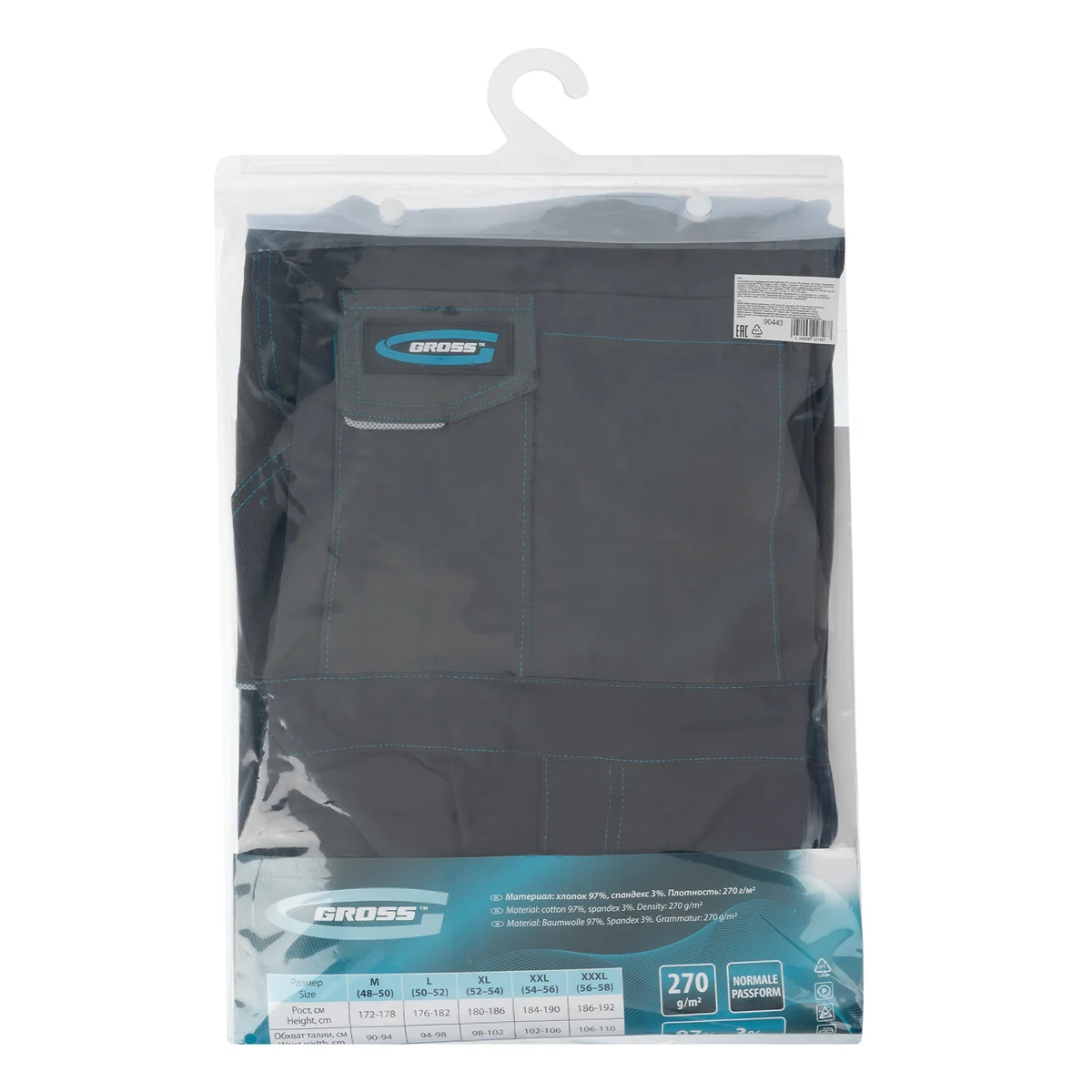 Полукомбинезон профессиональный рабочий, 97% хлопок 3% спандекс, XL Gross 90444