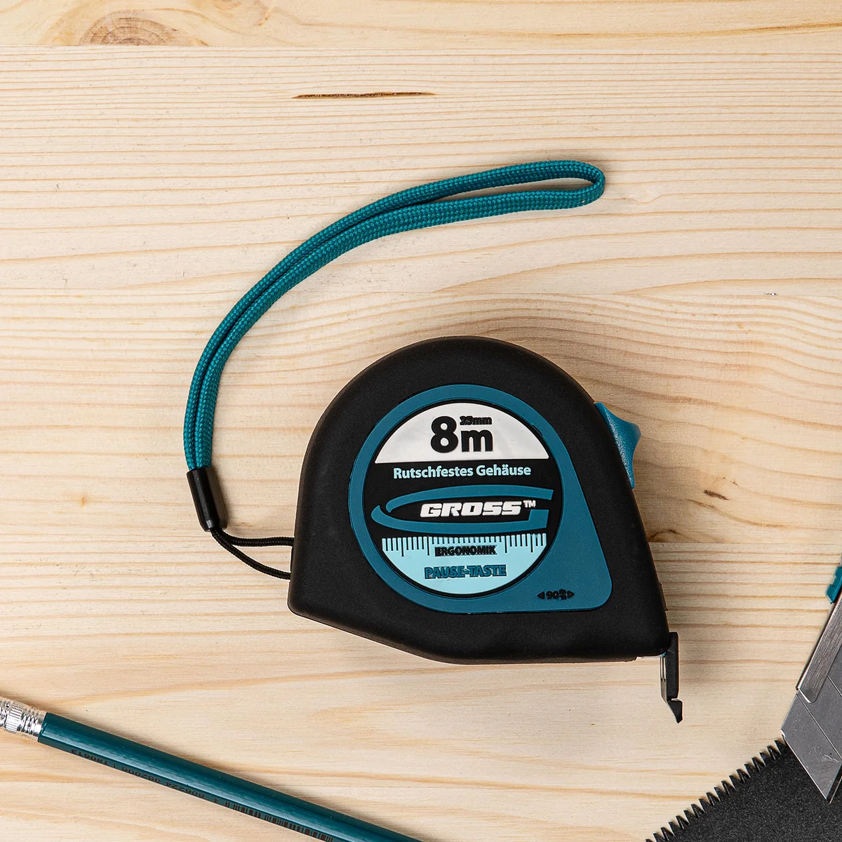 Рулетка Gross «Ergonomisch» 31104 с лентой 8 м х 25 мм и магнитным обрезиненным зацепом пригодится в хозяйстве и на строительной площадке для проведения измерительных работ. Этот карманный инструмент удобно брать с собой на выездные работы. За счет обрезиненного магнитного зацепа полотно можно зафиксировать на металлических поверхностях, также возможно измерение конструкций круглой и изогнутой формы, например, труб.ПреимуществаВысокая точность измерений от нуля — плавающий зацеп позволяет компенсировать погрешность от его толщины.Удобное проведение замеров — встроенный фиксатор позволяет удерживать полотно на нужной длине.Комфортная эксплуатация — за счет прорезиненного корпуса рулетка не проскальзывает в руке.Надежность — корпус из прочного ABS-пластика выдерживает механические воздействия и падения с небольшой высоты.Долговечность — окрашенное измерительное полотно отличается стойкостью к истиранию.Ремешок на запястье — рулетку можно повесить на руку, чтобы случайно не выронить.