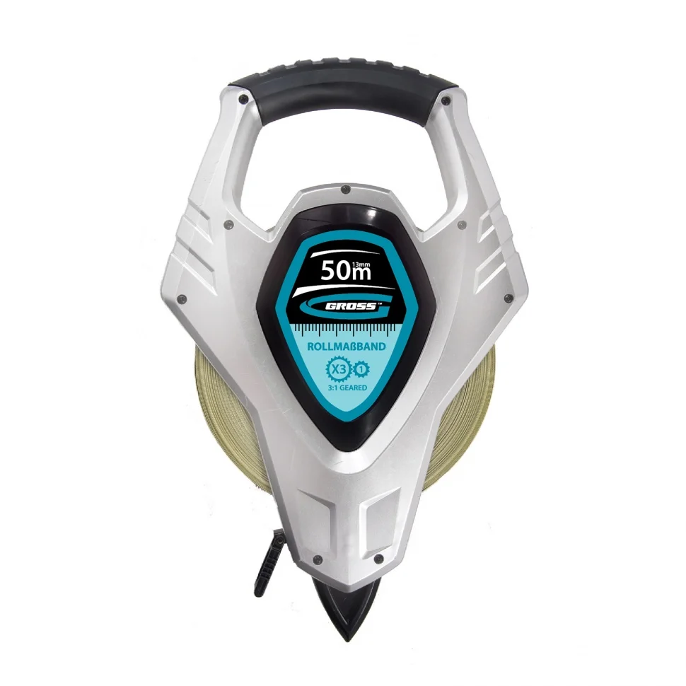 Рулетка геодезическая 50 м х 13 мм, откр, корп, металлическая лента, Super-Нейлон, двусторонняя шкала Gross 31480