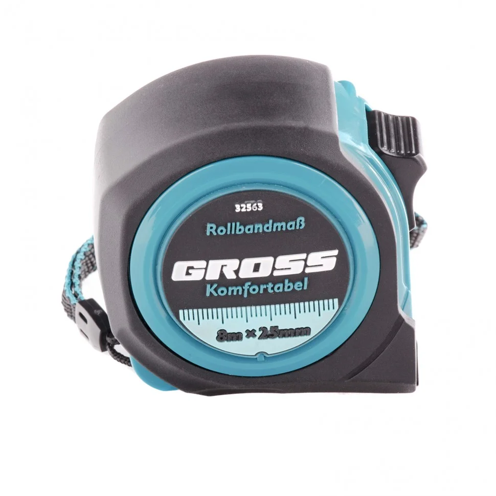 Рулетка Gross «Komfortabel» 32563 в обрезиненном корпусе с лентой 8 м х 25 мм — это удобный карманный инструмент, необходимый при проведении ремонтных и строительных работ. С ее помощью можно провести линейные измерения ровных поверхностей, различных заготовок, материалов, конструкций и т.д.ПреимуществаЗащита от ударного воздействия — корпус рулетки имеет обрезиненный чехол.Высокая точность измерений — благодаря подвижному зацепу компенсируется погрешность от его толщины.Легкое считывание результатов — измерительная шкала с матовым антибликовым покрытием нанесена крупными цифрами.Ремешок и прижимная клипса — рулетку можно зафиксировать на запястье или на ремне для комфортной работы и транспортировки.