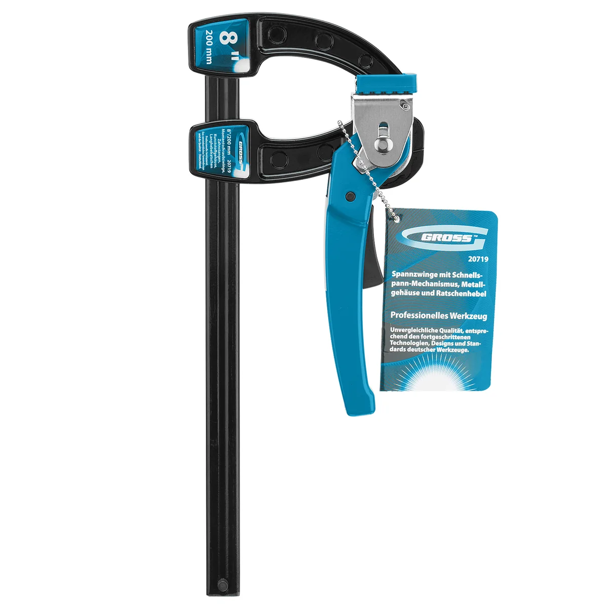 Струбцина реечная быстрозажимная 8, металлический корпус, рычажный храповой механизм, 200 мм Gross 20719