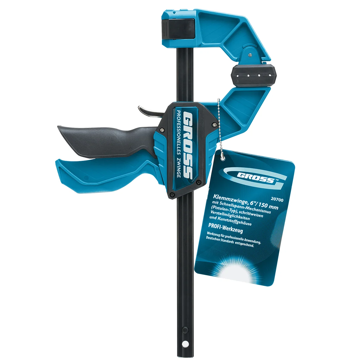Струбцина реечная, быстрозажимная, пистолетного типа, пошаговый механизм, пластиковый корпус, 150 мм Gross 20700