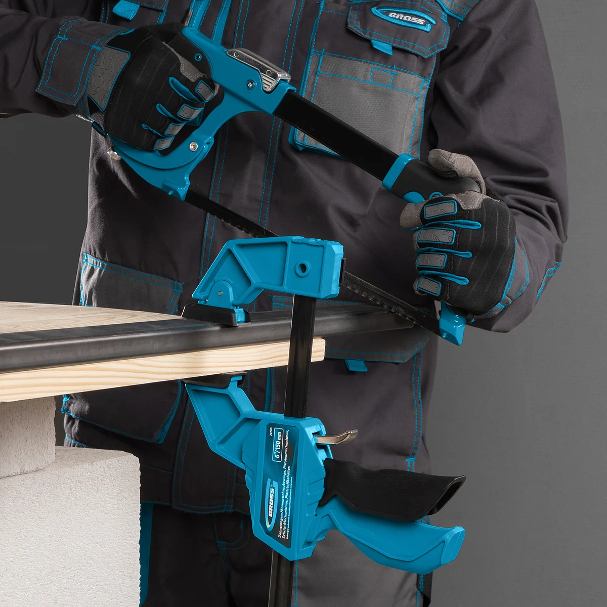 Реечная быстрозажимная струбцина Gross 20700 пистолетного типа, с пластиковым корпусом, с шириной зажима 150 мм, с пошаговым механизмом, используется для зажимания заготовок при выполнении столярных или монтажных работ. Удобна для фиксации деревянных деталей, т. к. пластиковые накладки на губках не повреждают их поверхность при сжатии. Подвижная губка пошагово перемещается по рейке, постепенно зажимая обрабатываемый предмет. Курковый фиксатор удерживает ее в заданном положении. Инструмент рекомендован для профессионального использования.ПреимуществаУстойчивость к высоким нагрузкам — корпус и губки изготовлены из ударопрочного пластика, а шина — из углеродистой стали.Защита от разрушения — антикоррозионное покрытие шины защищает струбцину от ржавчины и продлевает срок ее службы.Многофункциональность — опорную губку можно переставить на другой конец рейки, чтобы использовать струбцину как распорный инструмент.Гарантия качества — струбцина изготовлена в Тайване под строгим контролем качества.