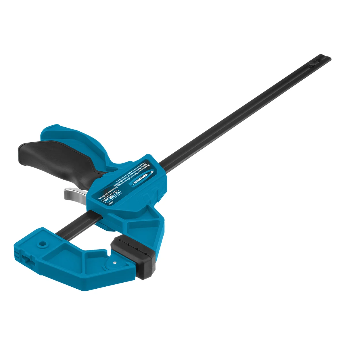 Реечная быстрозажимная струбцина Gross 20702 пистолетного типа, с пластиковым корпусом, с шириной зажима 300 мм, с пошаговым механизмом, используется для зажимания заготовок при выполнении столярных или монтажных работ. Удобна для фиксации деревянных деталей, т. к. пластиковые накладки на губках не повреждают их поверхность при сжатии. Подвижная губка пошагово перемещается по рейке, постепенно зажимая обрабатываемый предмет. Курковый фиксатор удерживает ее в заданном положении. Инструмент рекомендован для профессионального использования.ПреимуществаУстойчивость к высоким нагрузкам — корпус и губки изготовлены из ударопрочного пластика, а шина — из углеродистой стали.Защита от разрушения — антикоррозионное покрытие шины защищает струбцину от ржавчины и продлевает срок ее службы.Многофункциональность — опорную губку можно переставить на другой конец рейки, чтобы использовать струбцину как распорный инструмент.Гарантия качества — струбцина изготовлена в Тайване под строгим контролем качества.