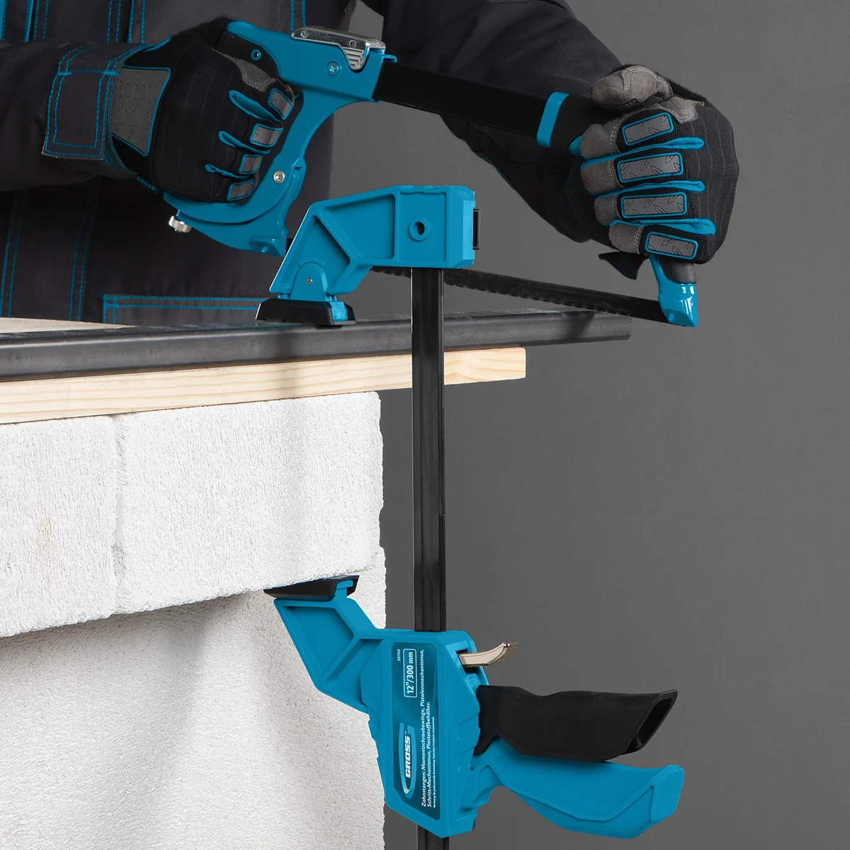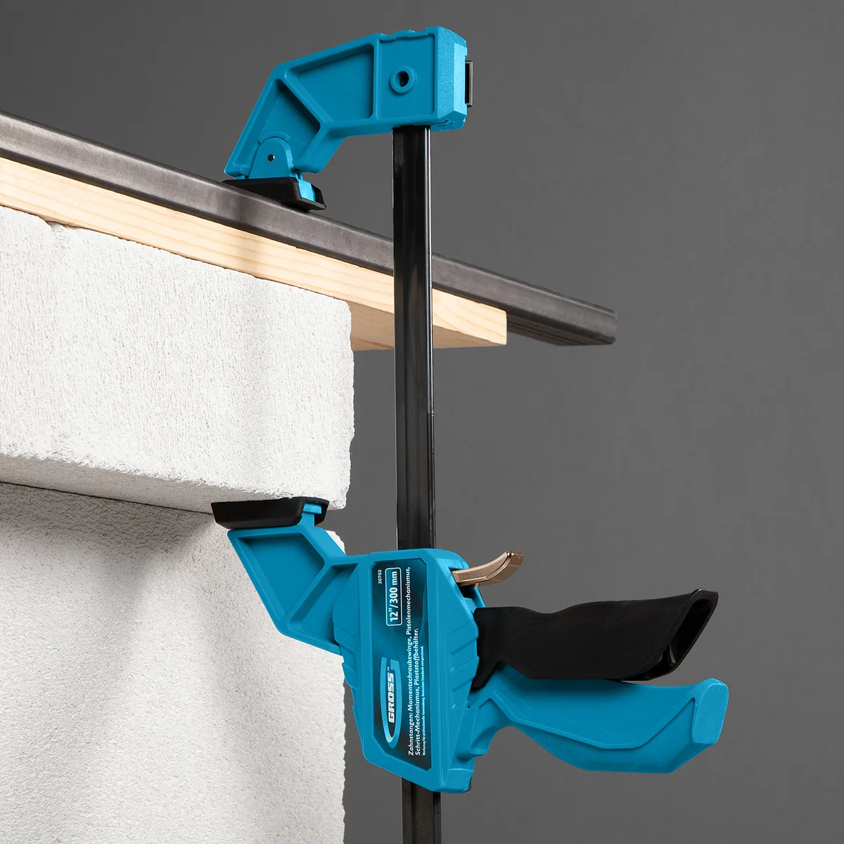 Струбцина реечная, быстрозажимная, пистолетного типа, пошаговый механизм, пластиковый корпус, 300 мм Gross 20702