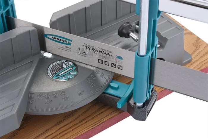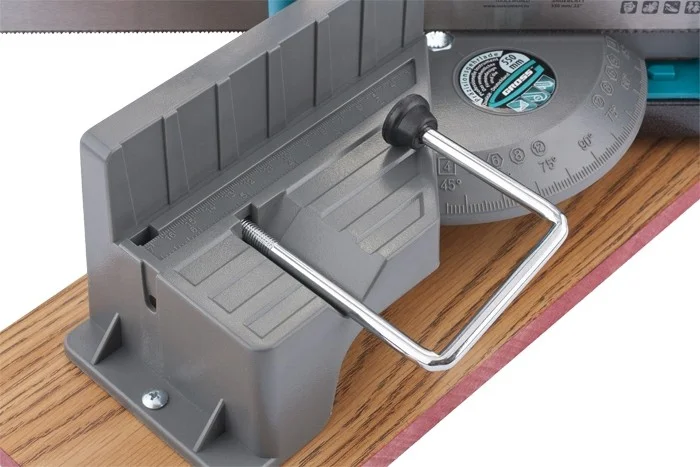 Прецизионное стусло Gross 22757 с пилой длиной 550 мм и 2 прижимными струбцинами предназначено для распиловки заготовок из древесины, пластика и древесно-композитных материалов. Стусло используется для работы с деталями шириной до 13,7 см и толщиной 11 см. Устройство обеспечивает высокую производительность работ и оптимально для профессионального применения.ПреимуществаРешение широкого спектра задач — можно устанавливать наиболее популярные углы распиловки деталей: 15, 22,5, 30, 36, 45 и 90°.Надежность — рабочий столик изготовлен из ударопрочного пластика и зафиксирован на плите МДФ.Функциональность — прижимные струбцины надежно фиксируют заготовку, измерительные шкалы облегчают определение ее рабочей длины и угла распила.Чистый и ровный рез — пильное полотно из инструментальной японской стали SK-5 имеет мелкие зубья с шагом TPI 14.Эргономичность — алюминиевая рукоятка с резиновой накладкой надежно ложится в руку.