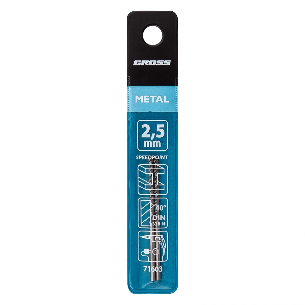 Сверло спиральное по металлу, 2.5 мм, HSS, 338 W, 2 шт Gross 71603