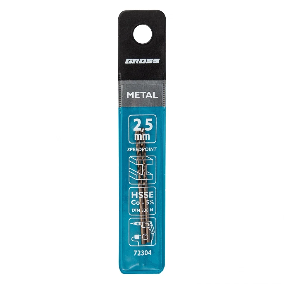 Сверло спиральное по металлу, 2.5 мм, HSS-Co, 2 шт Gross 72304