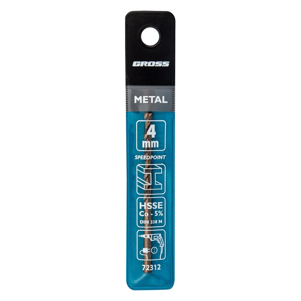 Сверло спиральное по металлу, 4 мм, HSS-Co Gross 72312