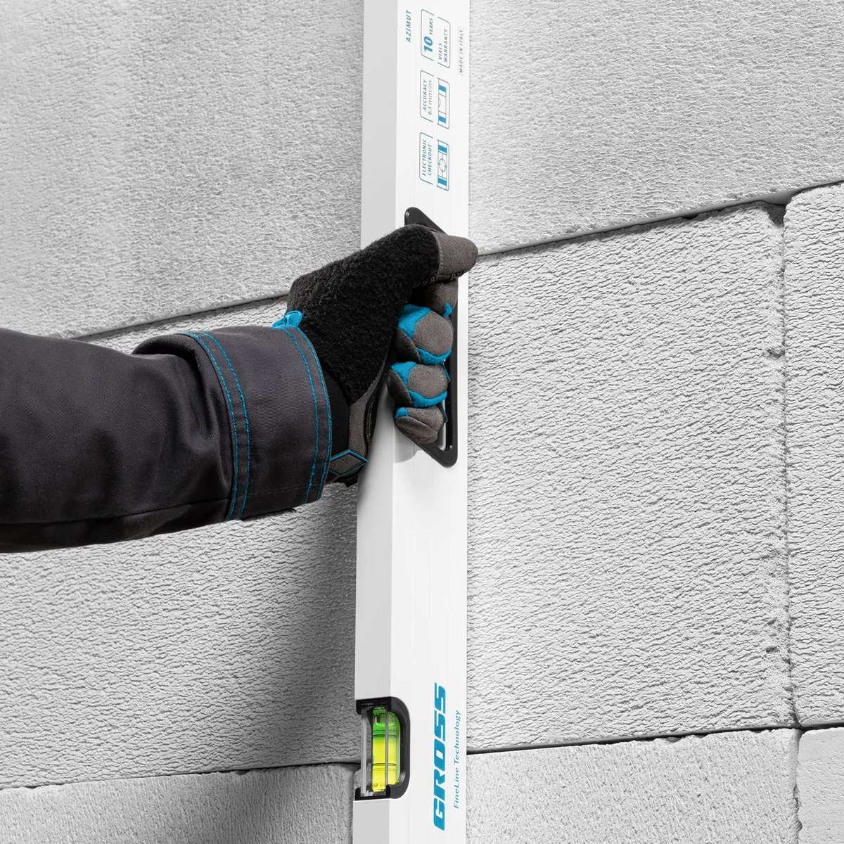 Усиленный алюминиевый уровень Gross 34372 длиной 1000 мм, с рукоятками и 3 глазками, фрезерованный, магнитный, — это простой и универсальный инструмент для проверки горизонтали и вертикали. Благодаря качественному исполнению инструмент обеспечивает высокую точность работы.Преимущества Прочность — корпус инструмента изготовлен из алюминиевого профиля. Встроенные магниты — уровень удобно использовать при работе с металлическими поверхностями. Комфортная работа — для удобного захвата инструмента в корпусе предусмотрены рукоятки. Эффективная работа — электронная калибровка глазков уровня и фрезерованная рабочая поверхность повышают точность проводимых измерений. Надежность — обрезиненные торцевые заглушки амортизируют удары при падении инструмента с небольшой высоты, что снижает риск его повреждения. Для определения отклонения вертикали 90 градусов необходимо использовать пузырьковую ампулу только в верхнем положении уровня. Только базовая поверхность является рабочей (противоположная ампуле 180 градусов).