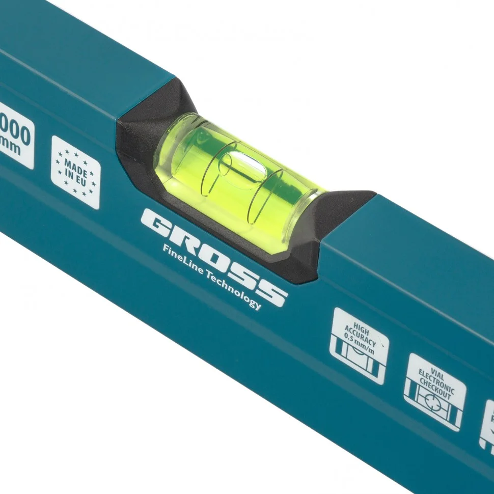 Уровень алюминиевый, 1200 мм, 2 рукоятки, фрезеровка, 3 глазка, Prazision Gross 34443