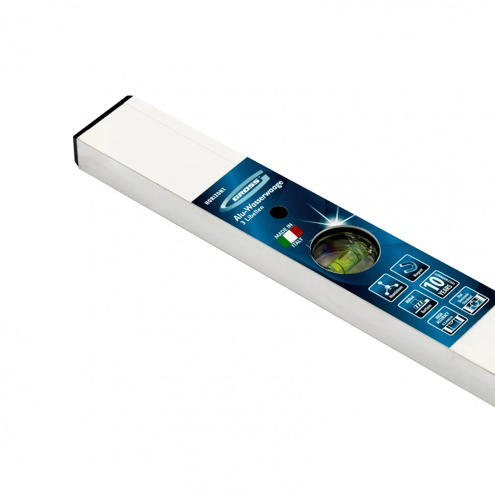 Фрезерованный алюминиевый уровень Gross 33674 длиной 1200 мм, магнитный, с 3 глазками, станет незаменимым инструментом в быту и на строительной площадке. С его помощью выявляются погрешности измерений, отклонения от заданной вертикали и горизонтали.Для определения отклонения вертикали 90 градусов необходимо использовать пузырьковую ампулу только в верхнем положении уровня. Только базовая поверхность является рабочей (противоположная ампуле 180 градусов).ПреимуществаКонструкционную прочность инструмента гарантирует алюминиевый профиль и пузырьковые камеры с двойными стенками.Благодаря магнитам строительный уровень можно зафиксировать на металлических поверхностях.Для снижения погрешности проводимых измерений до 0,5 мм/м магнитный уровень фрезерован.Инструмент изготовлен в Италии и прошел поэтапную проверку качества.Электронный контроль точности при установке пузырьковых ампул обеспечивает высокую эффективность работы.