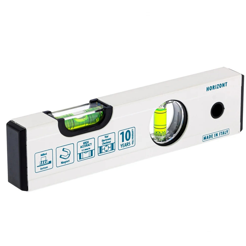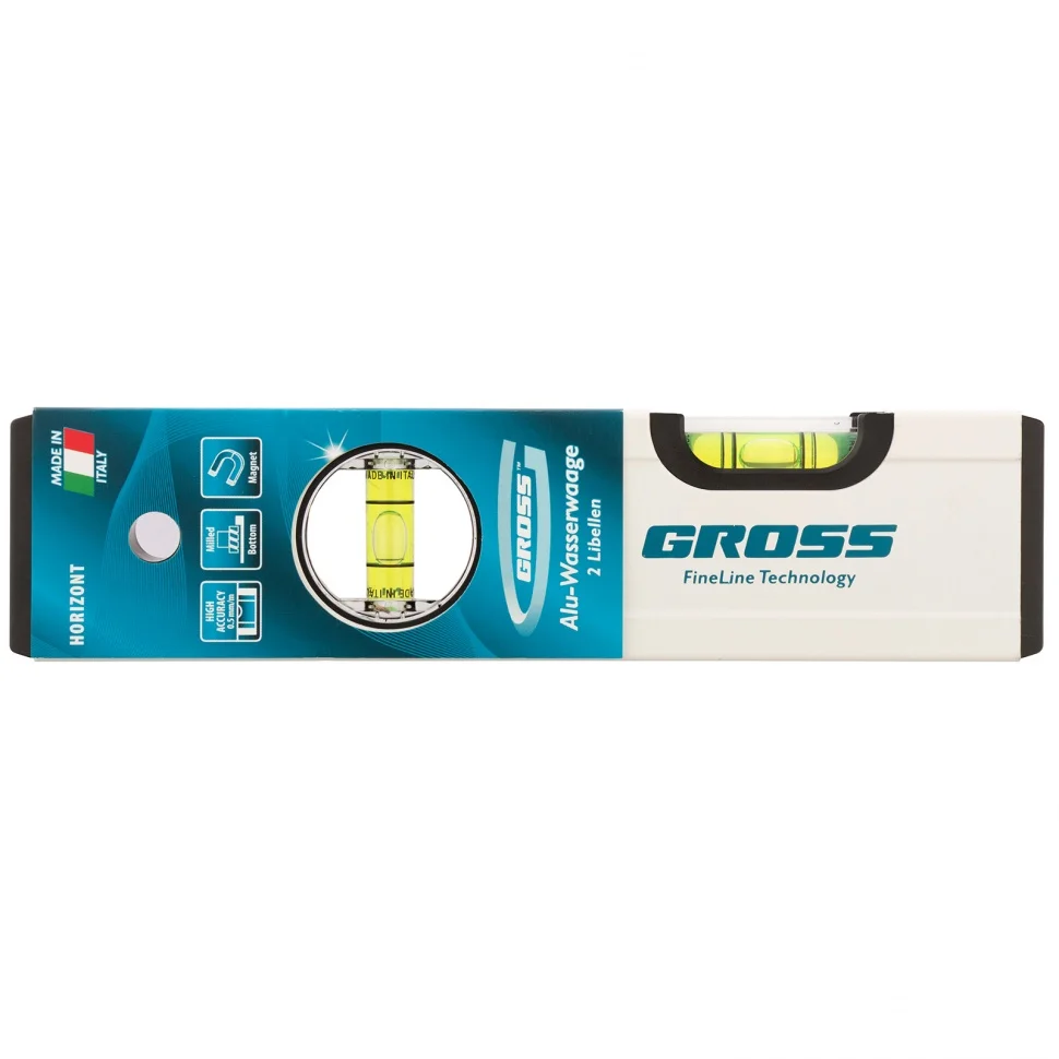 Фрезерованный алюминиевый уровень Gross 33669 длиной 200 мм, магнитный, с 2 глазками, служит для выявления отклонений от заданной горизонтали и вертикали. Используется мастерами в процессе строительных и ремонтных работ при укладке покрытий, отделке поверхностей, монтаже конструкций и т.д.Для определения отклонения вертикали 90 градусов необходимо использовать пузырьковую ампулу только в верхнем положении уровня. Только базовая поверхность является рабочей (противоположная ампуле 180 градусов).ПреимуществаАлюминиевый профиль и ударопрочные пузырьковые камеры с двойными стенками гарантируют высокий ресурс и надежность инструмента.Благодаря магнитам уровень легко фиксируется на стальных поверхностях для комфортной работы.Базовая поверхность уровня фрезерована, это позволяет свести погрешность при измерениях к минимуму (0,5 мм/м).В корпусе предусмотрено отверстие для подвесного хранения.Инструмент изготовлен в Италии с контролем на каждом этапе производства, что подтверждает его высокое качество.При монтаже пузырьковых ампул на производстве осуществлен электронный контроль.