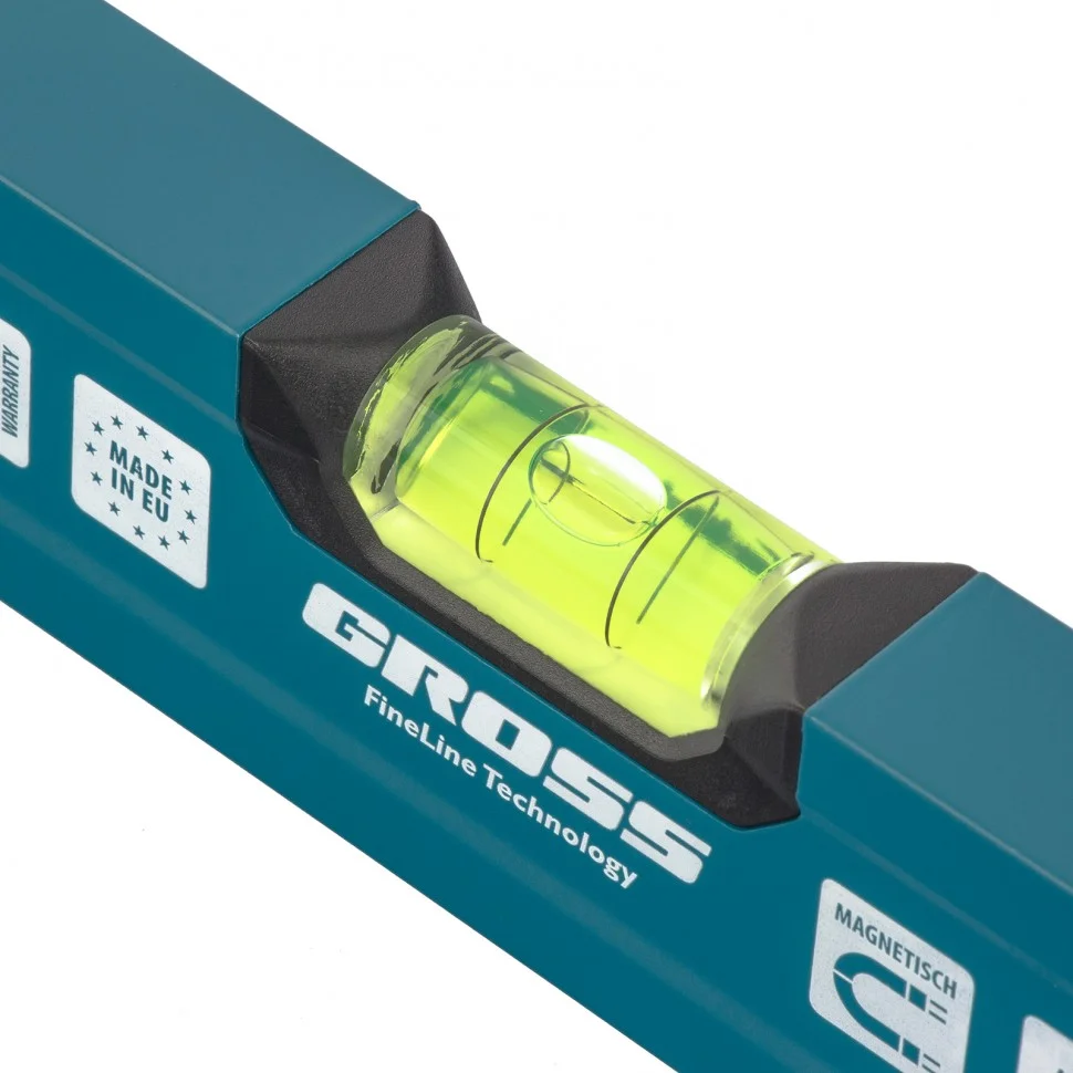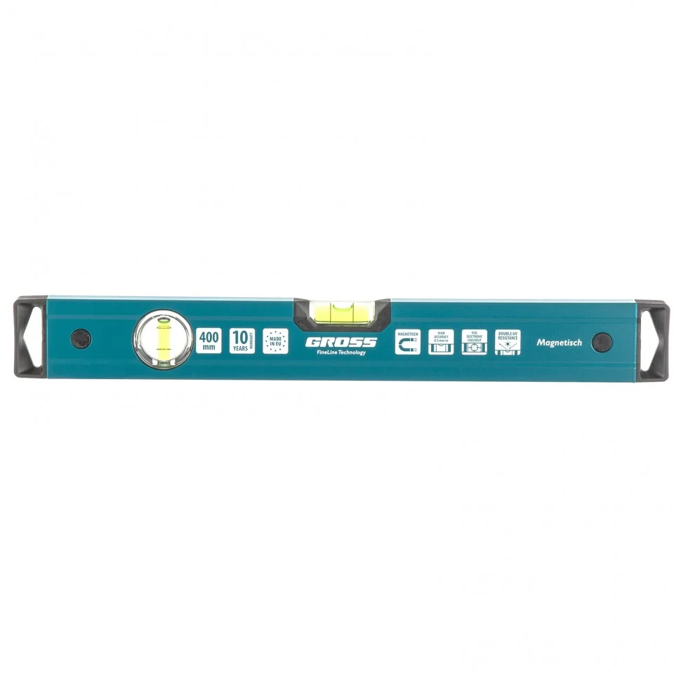 Алюминиевый уровень Gross Magnetisch 33710 длиной 400 мм имеет 2 глазка для определения отклонений от вертикали или горизонтали. Пригодится для решения как бытовых, так и профессиональных задач во время строительства или ремонта. Погрешность при проведении замеров не превышает 1 мм на метр (0,057 градуса).Для определения отклонения вертикали 90 градусов необходимо использовать пузырьковую ампулу только в верхнем положении уровня. Только базовая поверхность является рабочей (противоположная ампуле 180 градусов).ПреимуществаПрочность и долговечность — каркас выполнен из алюминиевого профиля, а корпус — из ударопрочной пластмассы.Удобство использования — за счет встроенных магнитов уровень можно фиксировать на металлических поверхностях.Увеличенные ампулы — с инструментом комфортно работать.Высокая точность замеров — монтаж глазков осуществлен под электронным контролем.Высокое качество — строительный уровень изготовлен в Европе.