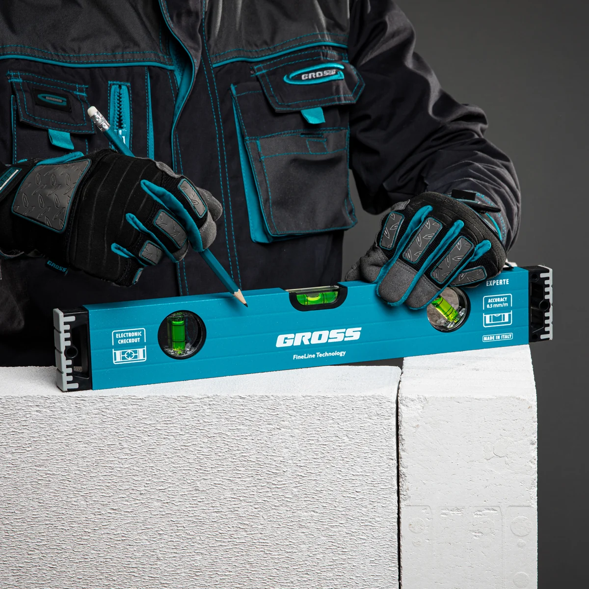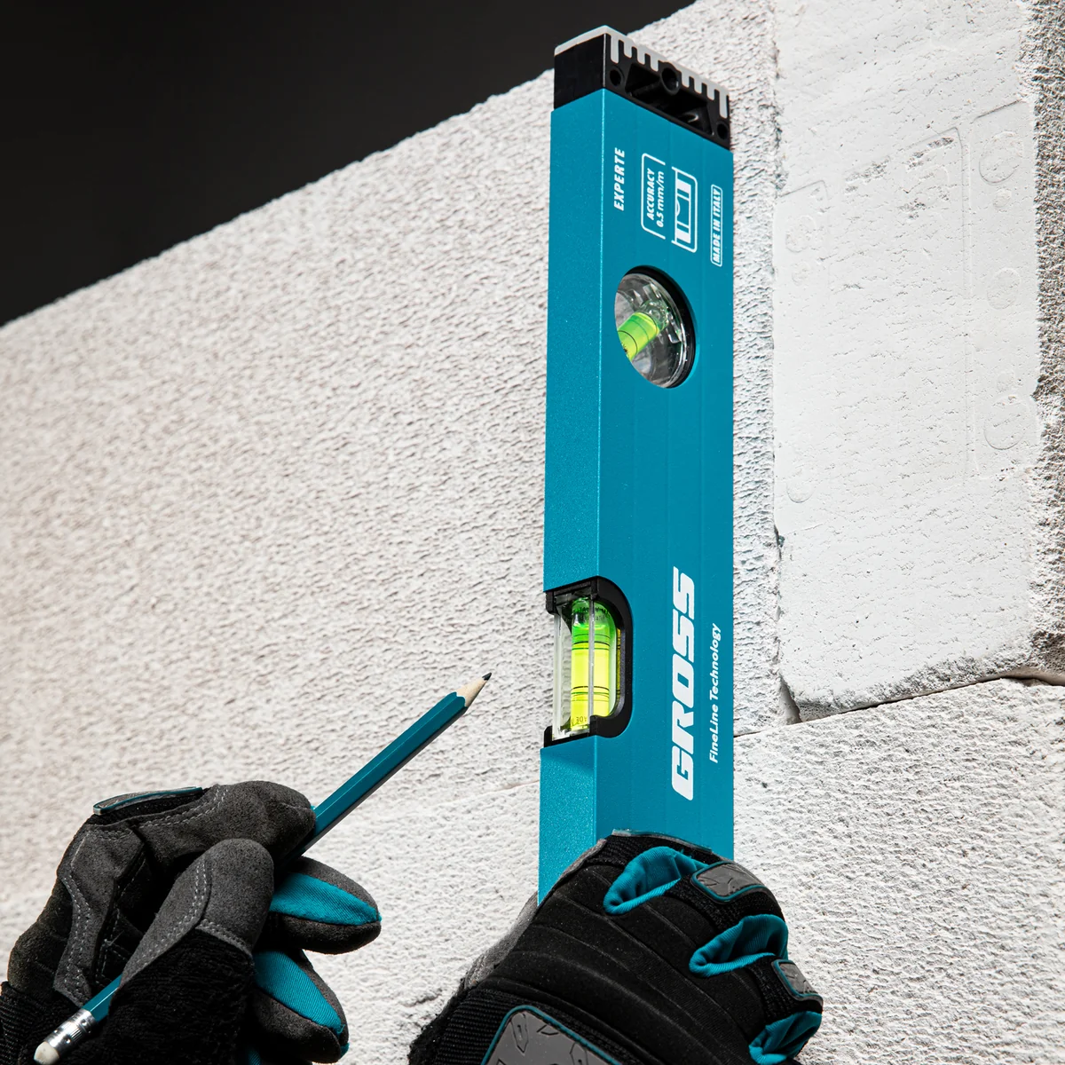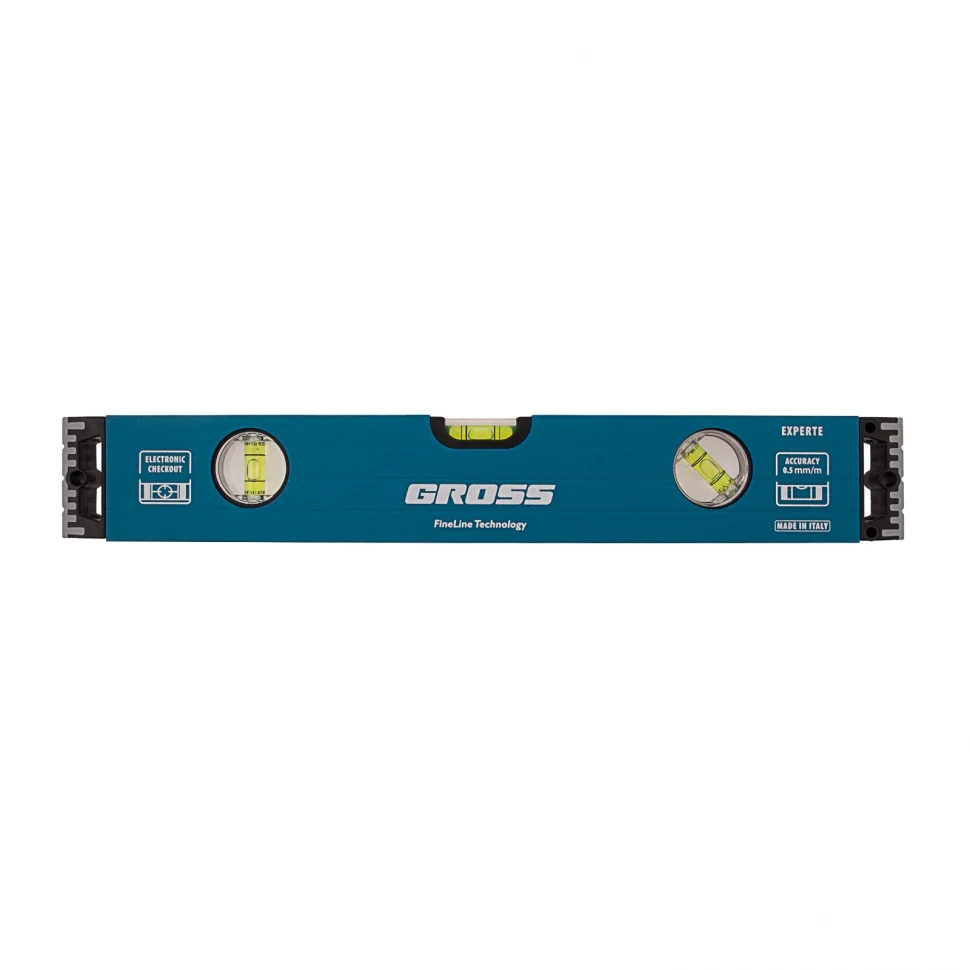 Алюминиевый уровень Gross 34324 длиной 400 мм, с усиленной конструкцией и ударопрочными заглушками, оснащен 3 глазками. Благодаря ему мастер сможет найти отклонения от горизонтали, вертикали или угла 45 градусов. Рассчитан на интенсивное использование, поэтому будет полезен в ходе строительных и ремонтных работ при укладке плитки, кирпича, заливке полов и при выполнении других операций.ПреимуществаВысокое качество — двухкамерный алюминиевый профиль обеспечивает долгий срок службы уровня.Продуманная конструкция — двухкомпонентные заглушки не только предотвращают попадание мусора в корпус, но и гасят ударные воздействия.Высокая точность работ — при изготовлении инструмента использована электронная калибровка глазков, фрезерованная подошва также снижает погрешность замеров.Комфортная работа — отверстия в корпусе обеспечивают надежный хват инструмента.Надежность — ампулы закреплены на пластиковые вставки и имеют защиту из поликарбоната.Удобное хранение — в корпусе предусмотрены отверстия для подвешивания инструмента.Для определения отклонения вертикали 90 градусов необходимо использовать пузырьковую ампулу только в верхнем положении уровня. Только базовая поверхность является рабочей (противоположная ампуле 180 градусов).
