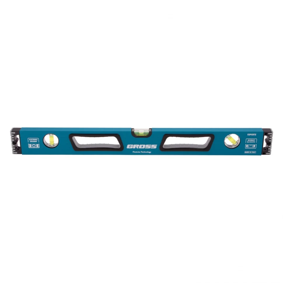 Усиленный алюминиевый уровень Gross 34326 длиной 600 мм, с ударопрочными заглушками, рукоятками и 3 глазками, — универсальный инструмент для решения профессиональных задач на строительной площадке. Благодаря ему можно выровнять поверхности относительно горизонтали и вертикали или проверить соответствие углу 45 градусов.ПреимуществаУсиленная конструкция — двухкамерный алюминиевый профиль повышает стойкость к скручиванию и обеспечивает долгий срок службы уровня.Эффективная работа — благодаря фрезерованной подошве погрешность измерений сведена к минимуму.Комфортная эксплуатация — резиновые рукоятки предотвращают проскальзывание инструмента в руках.Ударопрочность — двухкомпонентные заглушки обеспечивают сохранность инструмента при падениях с небольшой высоты.Удобное хранение — боковые отверстия служат для подвешивания инструмента на крючок.Для определения отклонения вертикали 90 градусов необходимо использовать пузырьковую ампулу только в верхнем положении уровня. Только базовая поверхность является рабочей (противоположная ампуле 180 градусов).