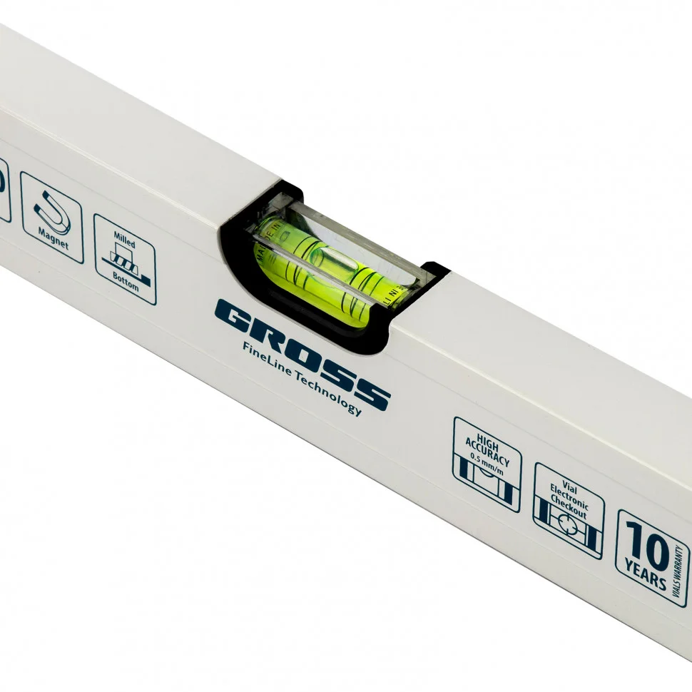Фрезерованный алюминиевый уровень Gross 33672 длиной 800 мм, магнитный, с 3 глазками, станет незаменимым инструментом в быту и на строительной площадке. С его помощью выявляются погрешности измерений, отклонения от заданной вертикали и горизонтали.Для определения отклонения вертикали 90 градусов необходимо использовать пузырьковую ампулу только в верхнем положении уровня. Только базовая поверхность является рабочей (противоположная ампуле 180 градусов).ПреимуществаКонструкционную прочность инструмента гарантирует алюминиевый профиль и пузырьковые камеры с двойными стенками.Благодаря магнитам строительный уровень можно зафиксировать на металлических поверхностях.Для снижения погрешности проводимых измерений до 0,5 мм/м магнитный уровень фрезерован.Инструмент изготовлен в Италии и прошел поэтапную проверку качества.Электронный контроль точности при установке пузырьковых ампул обеспечивает высокую эффективность работы.
