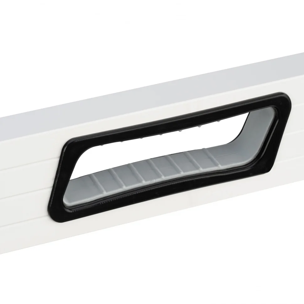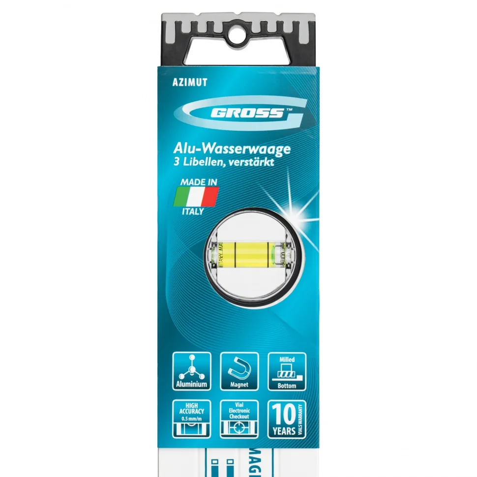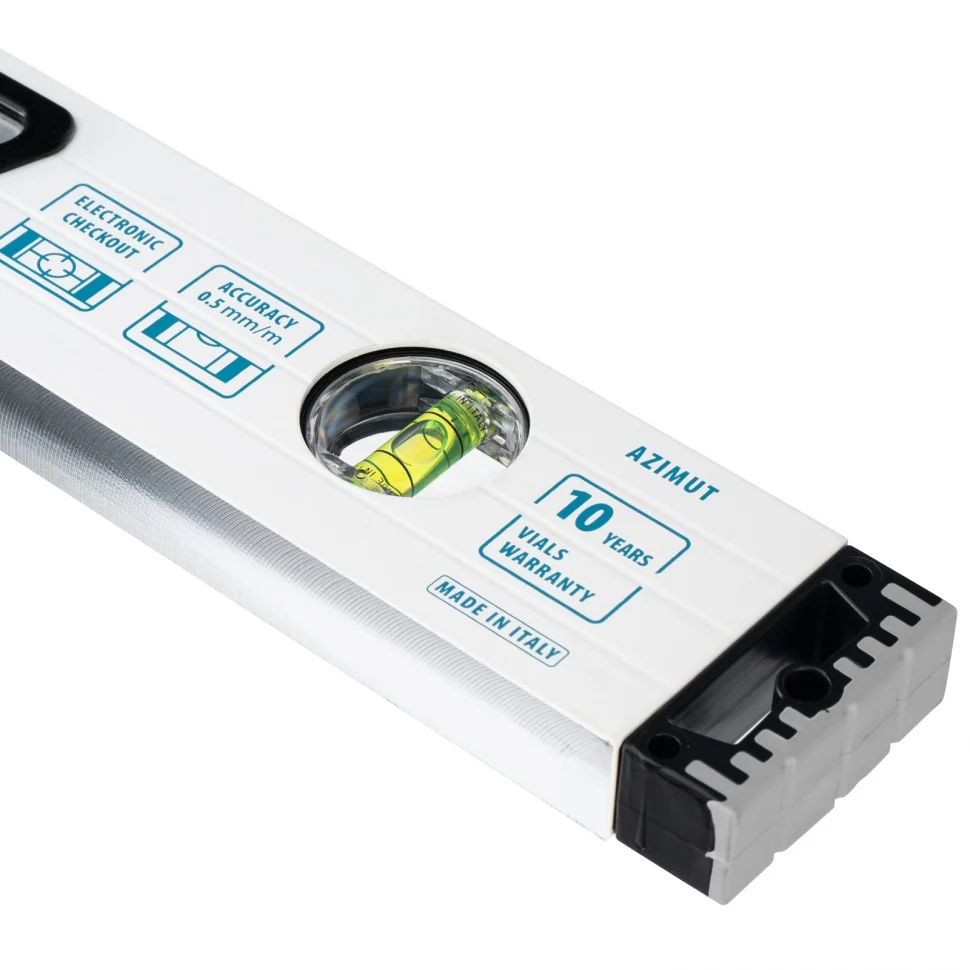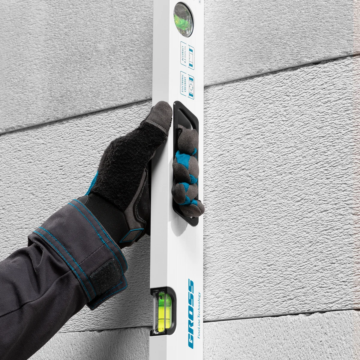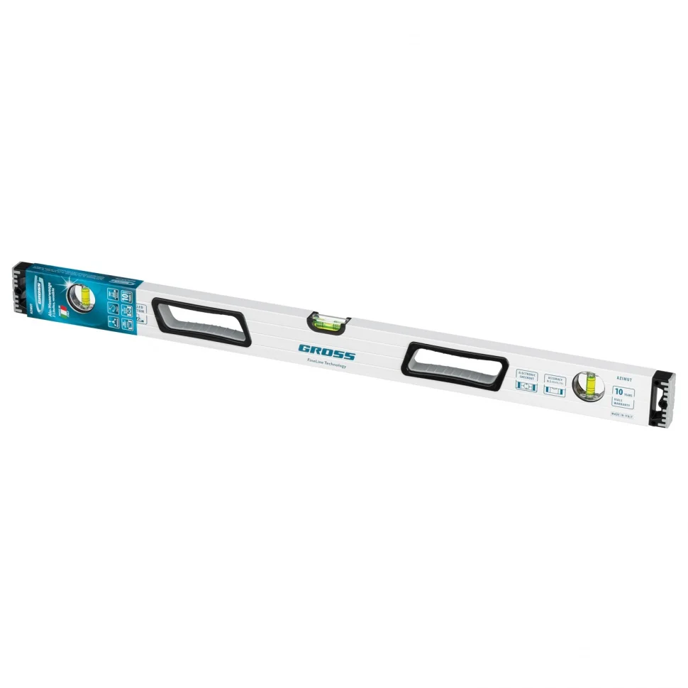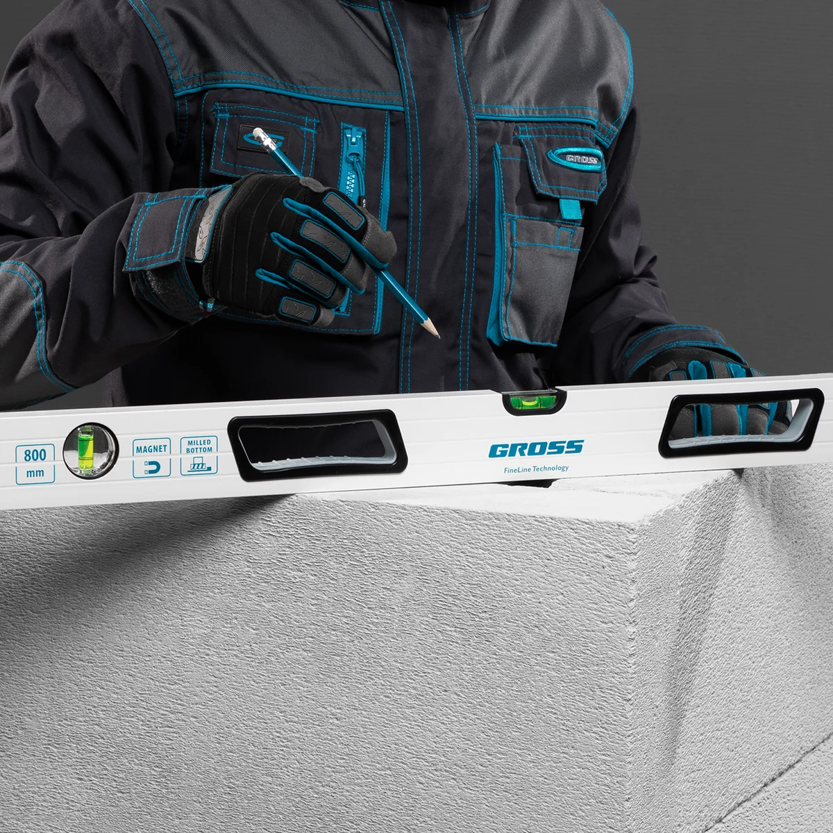 Усиленный алюминиевый уровень Gross 34371 длиной 800 мм, с рукоятками и 3 глазками, фрезерованный, магнитный, — это простой и универсальный инструмент для проверки горизонтали и вертикали. Благодаря качественному исполнению инструмент обеспечивает высокую точность работы.Преимущества Прочность — корпус инструмента изготовлен из алюминиевого профиля. Встроенные магниты — уровень удобно использовать при работе с металлическими поверхностями. Комфортная работа — для удобного захвата инструмента в корпусе предусмотрены рукоятки. Эффективная работа — электронная калибровка глазков уровня и фрезерованная рабочая поверхность повышают точность проводимых измерений. Надежность — обрезиненные торцевые заглушки амортизируют удары при падении инструмента с небольшой высоты, что снижает риск его повреждения. Для определения отклонения вертикали 90 градусов необходимо использовать пузырьковую ампулу только в верхнем положении уровня. Только базовая поверхность является рабочей (противоположная ампуле 180 градусов).