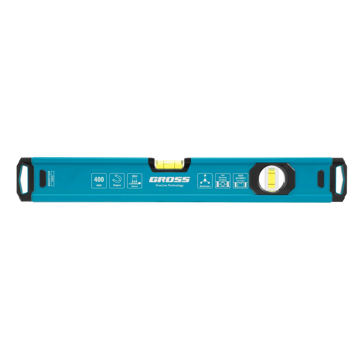 Уровень алюминиевый, магнит., фрезерованный, 2 глазка, 0,5 мм/м, 400 мм Gross 33650