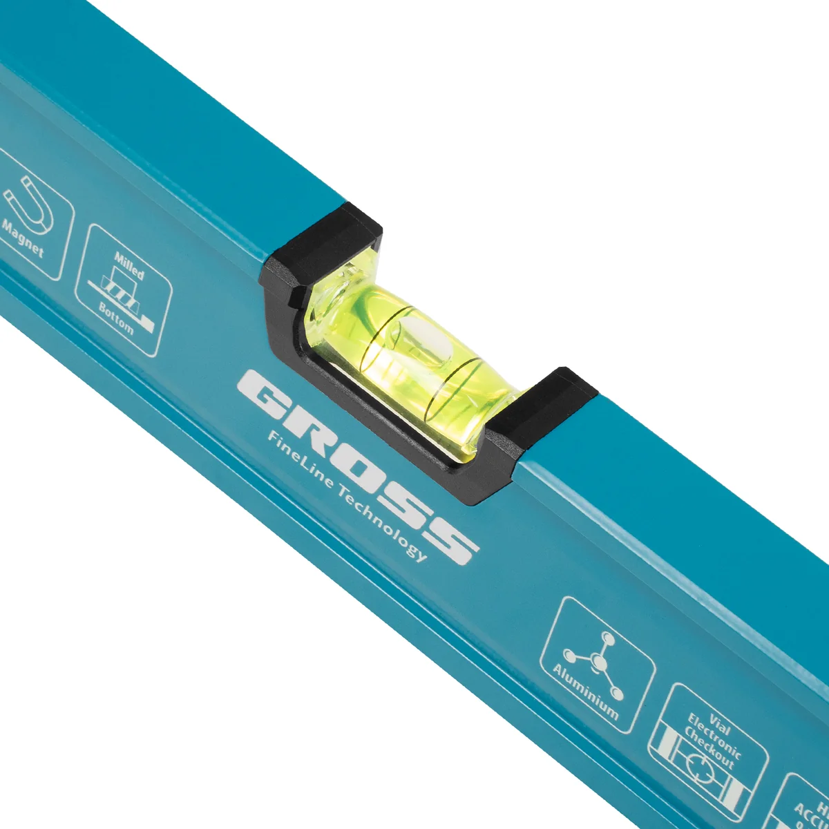 Уровни строительные, правило, дальномеры » Gross Уровень алюминиевый, магнит., фрезерованный, 3 глазка, 0,5 мм/м, 1200 мм 33654