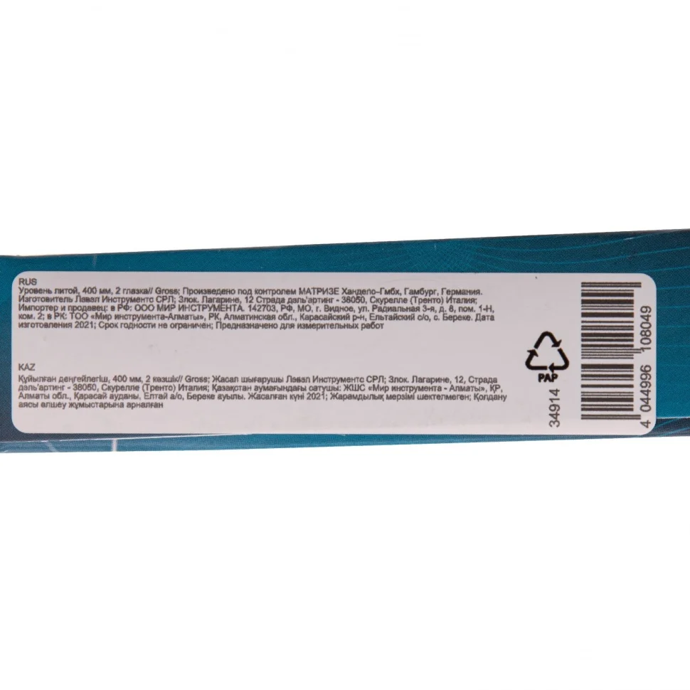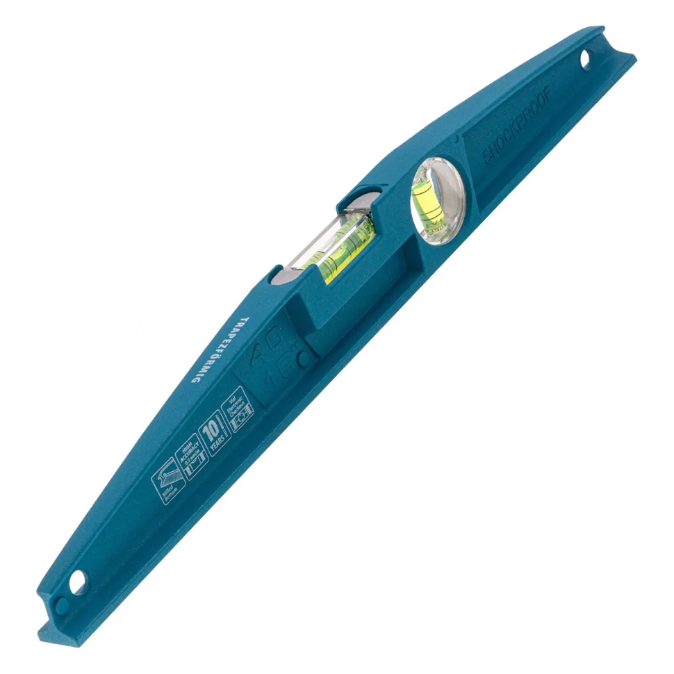 Литой уровень Gross 34914 длиной 400 мм снабжен 2 глазками для построения вертикали и горизонтали. Инструмент оптимально подходит для использования при укладке напольной и настенной плитки, кирпичной кладки, брусчатки и т.д.ПреимуществаВысокий ресурс и надежность — корпус выполнен из алюминиевого профиля методом литья.Система SHOCKPROOF — по инструменту можно наносить несильные удары резиновой киянкой для дополнительного выравнивания материалов.Повышенная точность замеров — каждый глазок имеет 4 дополнительных насечки, а рабочая грань фрезерована.Удобство выбора инструмента — на корпус нанесены схематические пиктограммы и имеется двусторонний информационный вкладыш.Высококачественное исполнение — уровень изготовлен в Европе, на герметичность глазков предоставляется гарантия 10 лет.Для определения отклонения вертикали 90 градусов необходимо использовать пузырьковую ампулу только в верхнем положении уровня. Только базовая поверхность является рабочей (противоположная ампуле 180 градусов).
