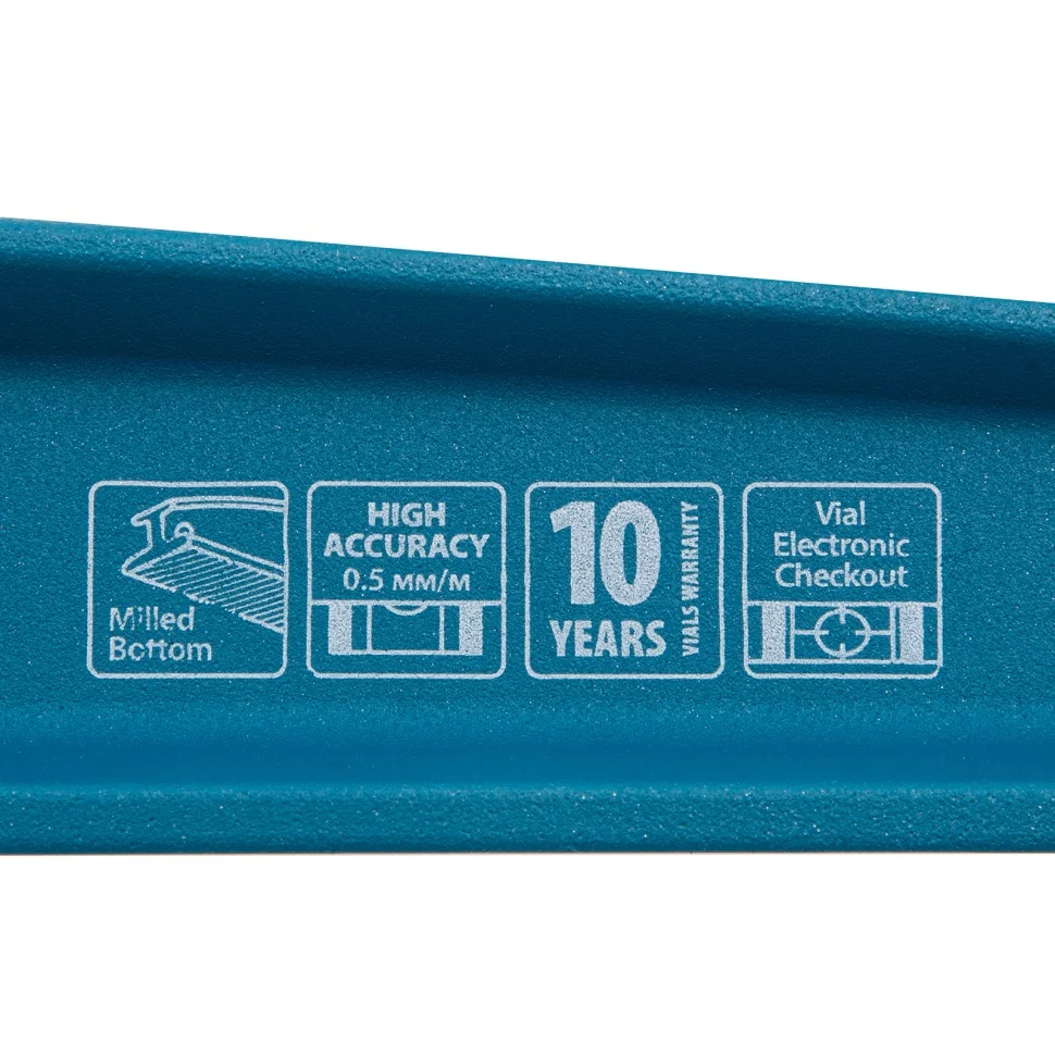 Литой уровень Gross 34916 длиной 600 мм снабжен 2 глазками для построения вертикали и горизонтали. Инструмент оптимально подходит для использования при укладке напольной и настенной плитки, кирпичной кладки, брусчатки и т.д.ПреимуществаВысокий ресурс и надежность — корпус выполнен из алюминиевого профиля методом литья.Система SHOCKPROOF — по инструменту можно наносить несильные удары резиновой киянкой для дополнительного выравнивания материалов.Повышенная точность замеров — каждый глазок имеет 4 дополнительных насечки, а рабочая грань фрезерована.Удобство выбора инструмента — на корпус нанесены схематические пиктограммы и имеется двусторонний информационный вкладыш.Высококачественное исполнение — уровень изготовлен в Европе, на герметичность глазков предоставляется гарантия 10 лет.Для определения отклонения вертикали 90 градусов необходимо использовать пузырьковую ампулу только в верхнем положении уровня. Только базовая поверхность является рабочей (противоположная ампуле 180 градусов).
