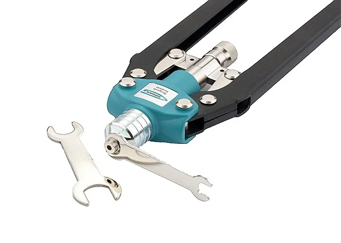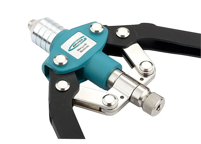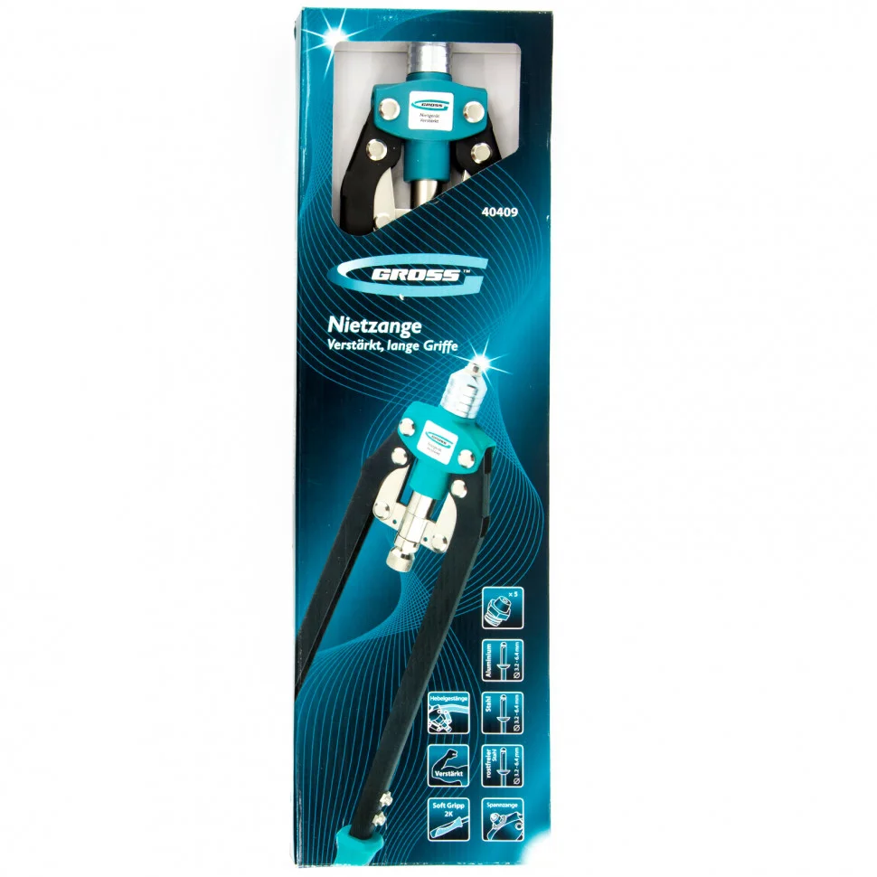Заклёпочник двуручный усиленный Gross 40409 с удлинёнными рукоятками, 520 мм, предназначен для соединения листовых заготовок, металлопрофиля, легких строительных конструкций и плоских деталей. Применяется с алюминиевыми, стальными и нержавеющими заклёпками 3,2-4,0-4,8-6,0-6,4 мм, для которых предусмотрены сменные насадки. Благодаря удлиненным рукояткам требуется меньше усилий при клёпке по сравнению с обычным инструментом. Заклёпочник используется при проведении строительных и ремонтных работ, в производстве мебели, бытовой и оргтехники, а также для ремонта автомобилей.ПреимуществаЦанговый механизм устойчив к механическим нагрузкам и обеспечивает надёжный захват стержня заклёпки, поскольку изготовлен из высокопрочной хромомолибденовой стали SCM415.Для быстрой замены головок в комплекте предусмотрен монтажный ключ.Эргономичные рукоятки позволяют снизить нагрузку на руки при длительной работе.