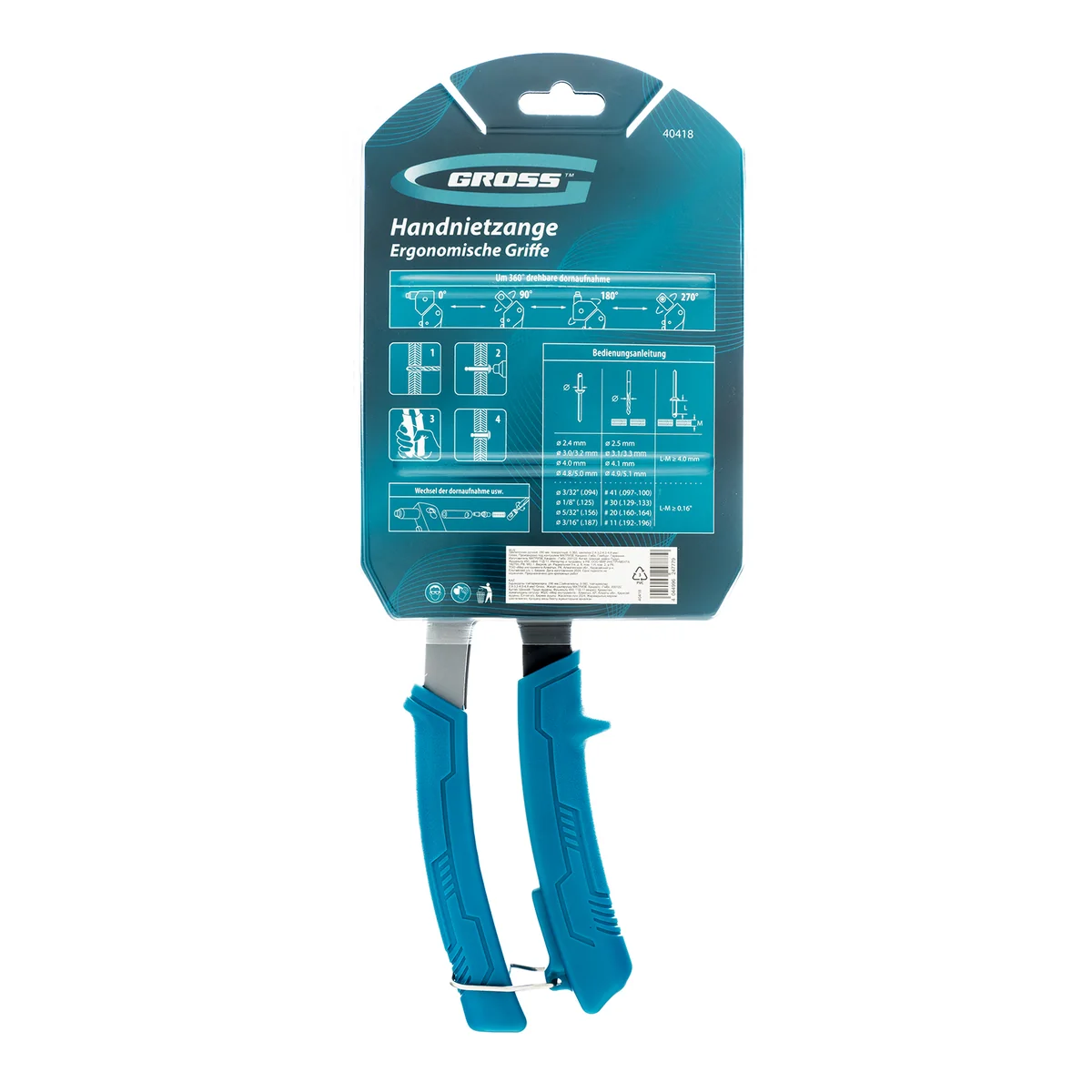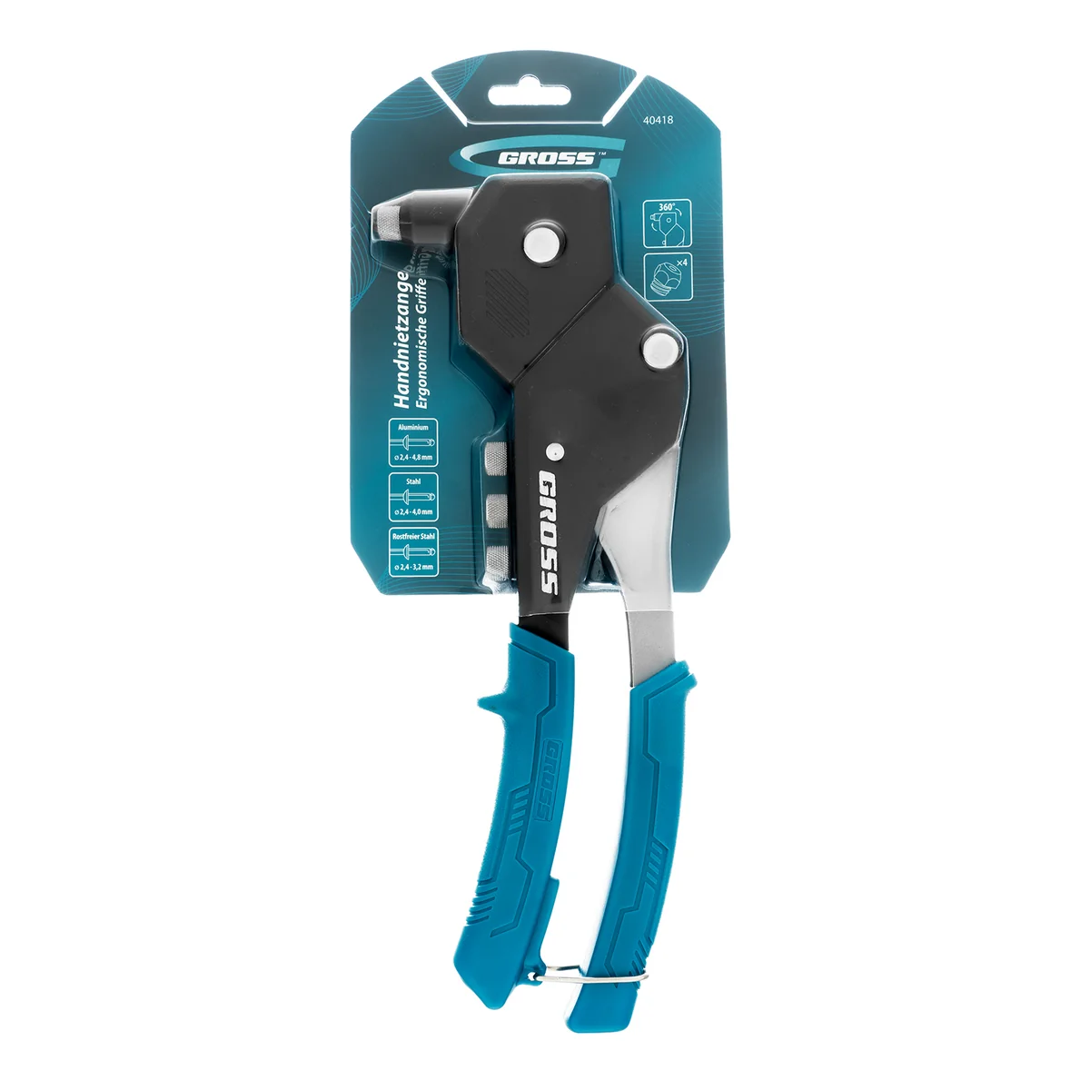 Заклепочник ручной, 290 мм, поворотный, 0-360, заклепки 2,4-3,2-4,0-4,8 мм Gross 40418