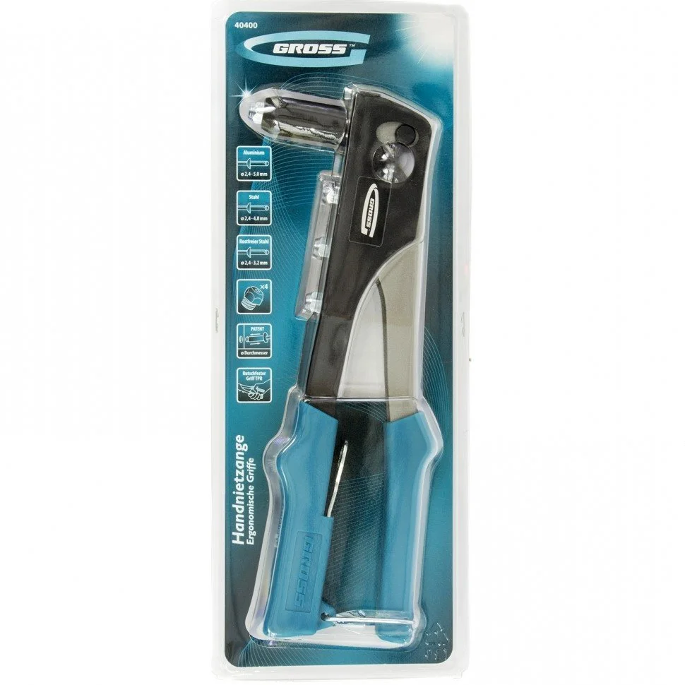 Заклепочник GROSS предназначен для работ по соединению листового металла, различных тонкостенных конструкций и металлических профилей.