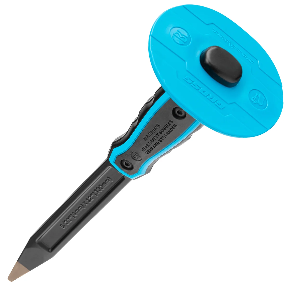 Зубило-керн Gross 18805, 300 мм, используется в качестве ручного инструмента с молотками и кувалдами. Рабочая часть с двусторонней заточкой позволяет выполнять штробление бетона или создавать лунки для разметки и установки сверла и бура.Преимущества Повышенная прочность и износостойкость зубила достигается за счет изготовления режущей части из высококачественной хромованадиевой стали. Зубило-керн отлично держит заточку и обладает исключительной устойчивостью к механическим нагрузкам благодаря твердости рабочей части 56-62 HRC. Полотно зубила не подвержено коррозии за счет покрытия защитной эмалью. Двухкомпонентная эргономичная рукоятка повышает удобство работы, т.к. не скользит в руке и позволяет долгое время работать без усталости. Протектор защищает руки от случайного удара молотком.
