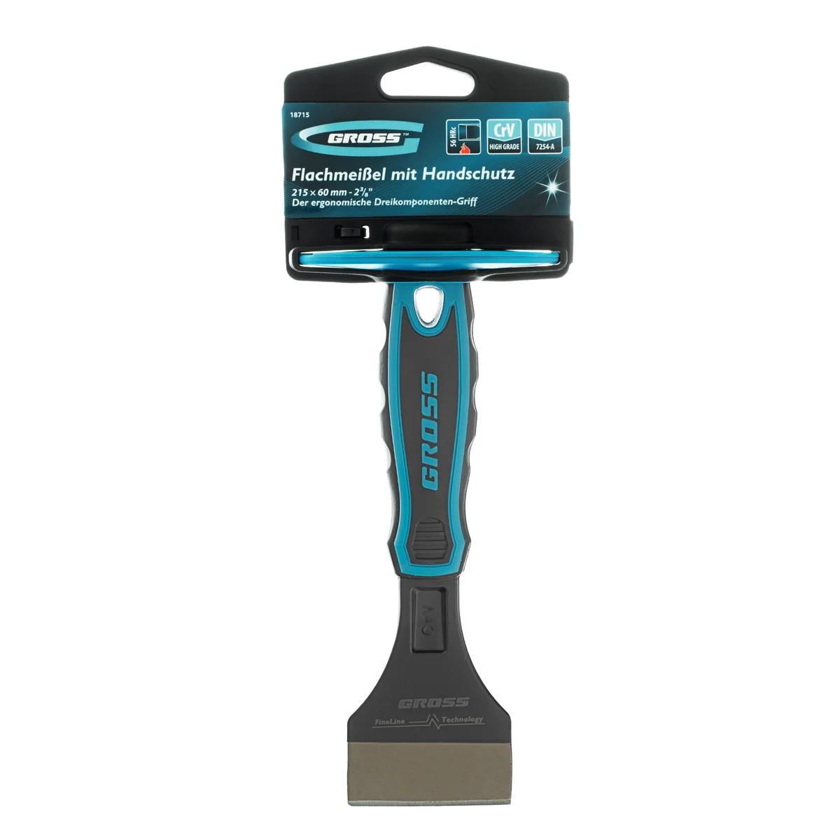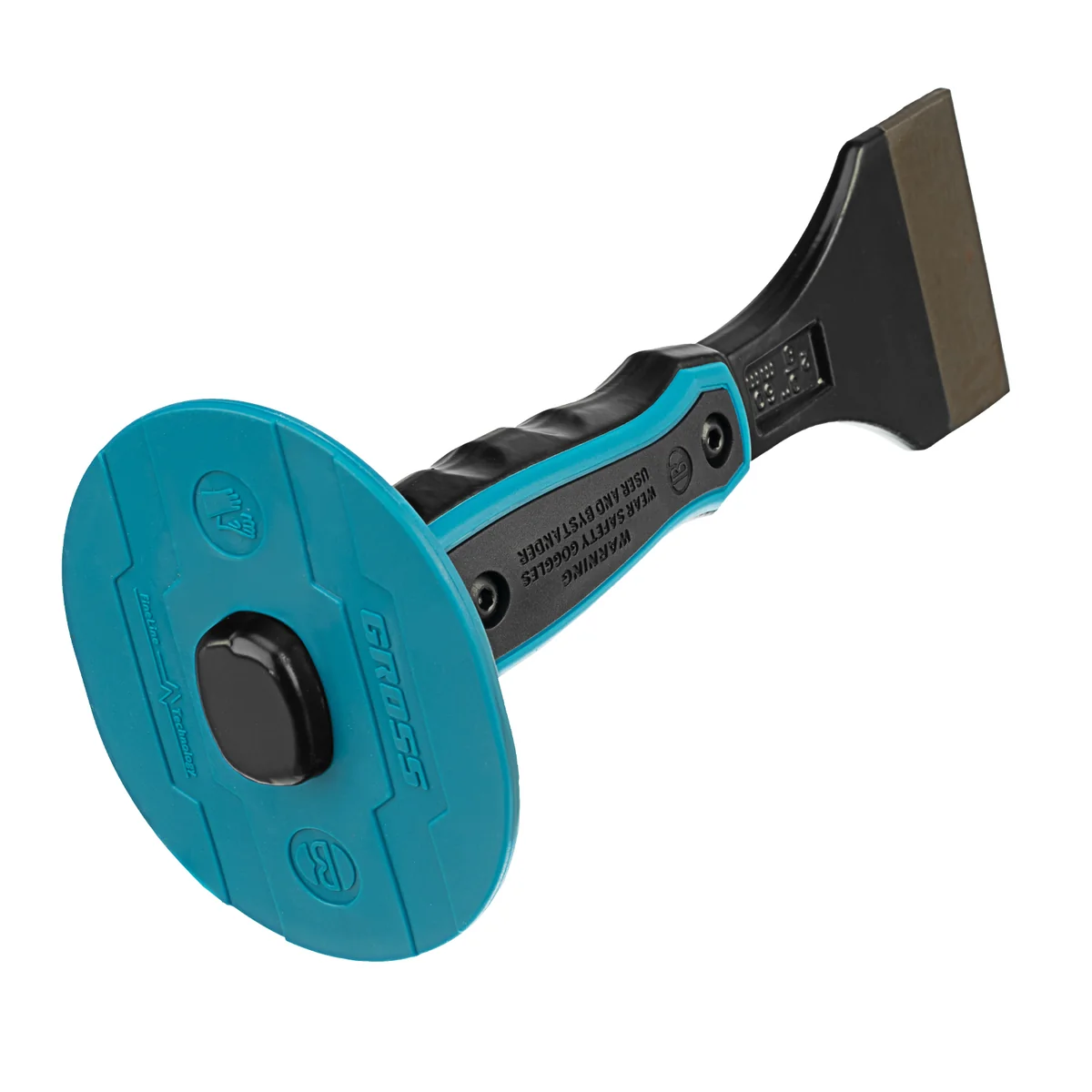 Зубило-конопатка Gross 18715, 215 х 60 мм-2-3/8 дюйма, рассчитано на работу с деревянным срубом, плиткой, камнем, кирпичом. Оно используется для запечатывания швов, монтажа утеплителя в деревянных постройках, демонтажа облицовки и т.д. Зубило относится к ручному режущему инструменту, работающему под ударным воздействием молотка или киянки.Преимущества Рабочая часть шириной 60 мм повышает эффективность работы на больших поверхностях. Полотно изготовлено из хромованадиевой стали, а рабочая часть закалена до 56-62 HRC, поэтому зубило отличается прочностью и стойкостью к механическим нагрузкам. Защитная эмаль предотвращает образование коррозии и разрушение зубила. Зубило оснащено протектором для предотвращения случайного попадания молотком или киянкой по руке. Двухкомпонентная рукоятка эргономичной формы не проскальзывает в руке и препятствует усталости даже при длительном использовании зубила.
