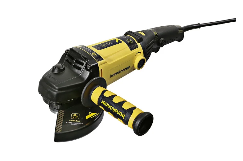 Hanskonner HAG15150EC – мощная универсальная болгарка (УШМ) под рабочий диаметр диска 150 мм. Имеет компоновку с длинной рукоятью, производительный 1500 Вт электромотор StoneCut и мощную механическую часть – способна выполнять любые задачи по резке, зачистке, шлифованию поверхностей из металла, керамической плитки, кирпича и камня. Выверенные массово-габаритные показатели, а также нейтральный центр тяжести гарантируют лучший контроль инструмента, а клиновидный корпус редуктора NarrowBody значительно облегчает рабочий процесс в условиях с трудным доступом. Главная особенность модели, выделяющая ее среди аналогов – наличие блока константной электроники EPM (Electronic Power Manager), задача которого поддерживать оптимальную частоту вращения на валу шпинделя, препятствуя падению оборотов под нагрузкой. Применение данной опции в среднем повышает производительность работы на 15%. Кроме того, блок EPM обеспечивает плавный запуск инструмента, исключая стартовый рывок, а также позволяет в широком диапазоне (2400 – 8400 об/ мин) производить регулировку оборотов вала шпинделя в зависимости от типа используемой оснастки и обрабатываемого материала. Модель имеет повышенные надежность и ресурс, как за счет применения качественных комплектующих (фирменные подшипники C&U), так и за счет продуманной, с запасом прочности, конструкции: электромотор покрыт несколькими изоляционными слоями термостойкого лака и бронирован от пыли и абразивных частиц, благодаря закалке, повышенной износостойкостью обладают конические шестерни редуктора, корпус инструмента изготовлен с использованием нейлона, что способствует его долговечности. Также, инструмент получил функцию автоматического отключения щеток AutoStopBrush, защищающую коллектор от повреждений при критическом уровне щеточного износа. Модель проста в эксплуатации и обслуживании. Снабжена быстросъемным защитным кожухом FastAdapt, надежно фиксирующимся при помощи специального зажимного рычага, а также удобной обрезиненной патентованной рукоятью. Предусмотрена функция быстрого доступа к щеткам QuickChange, обеспечивающая возможность их быстрой замены, без демонтажа элементов корпуса. Благодаря применению сетевого кабеля VelcroRubber4 с резиновой изоляцией, удалось в полной мере сохранить его гибкость и эластичность в условиях низких температур. Четырехметровая длина кабеля способна обеспечить рабочую зону площадью до 50 квадратных метров без необходимости применения дополнительного сетевого удлинителя.