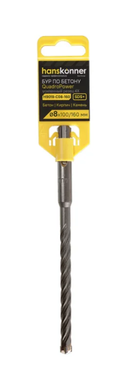 Бур SDS+ 08х160 QUADRO POWER крестовой резец спираль S4 Hanskonner H9019-C08-160
