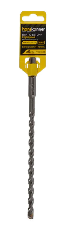 Бур SDS+ 08х210 HIGH SPEED плоский резец U спираль Hanskonner H9019-F08-210