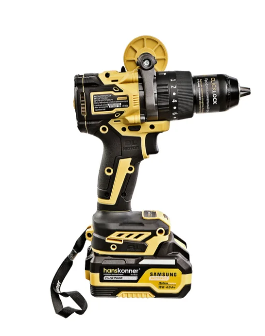 Темляк и скоба для удобного подвеса шуруповерта выполнены из качественных материалов и выдерживают нагрузку свыше 20кг.Встроенная светодиодная подсветка с применением блока коллиматорных линз эффективно освещает рабочую область перед патроном, направленным пучком света. В комплекте дополнительно идет USB фонарик на гибком штоке.Эргономичный корпус из ударопрочного нейлона с резиновыми вставками и силовая дополнительная рукоятка, позволяет работать с комфортом.Шуруповерт поставляется в фирменном боксе единой системы хранения HANSTORAGE.