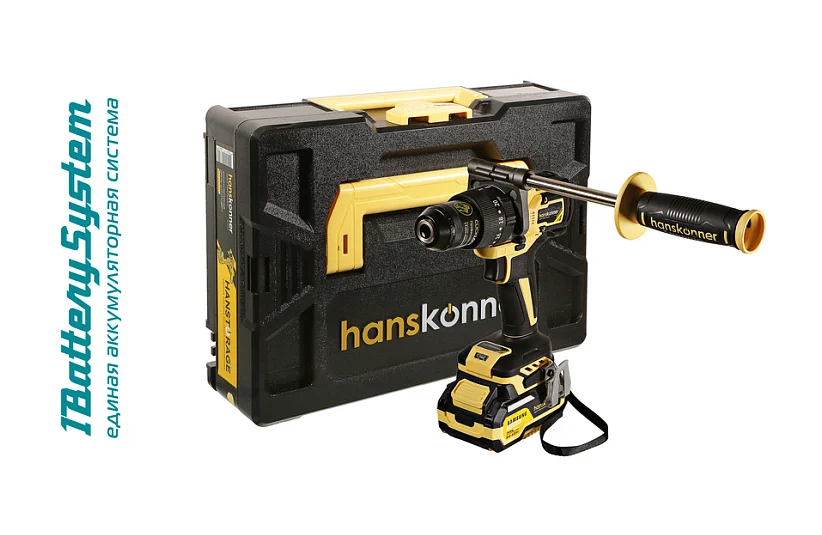 Дрель акк б/щ уд.Hanskonner PLATINUM,18В,1BatterySystem,165Нм,2+4Ач,SAMSUNG,кейс HS HCD20165PRO