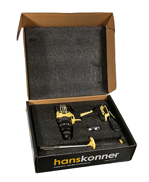 Аккумуляторная ударная дрель-шуруповерт Hanskonner HCD18165BL подходит для любых работ, в том числе в стесненных условиях и труднодоступных местах без снижения производительности и потери качества работ.