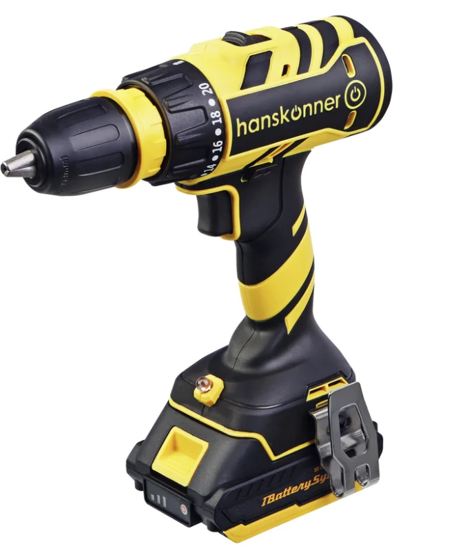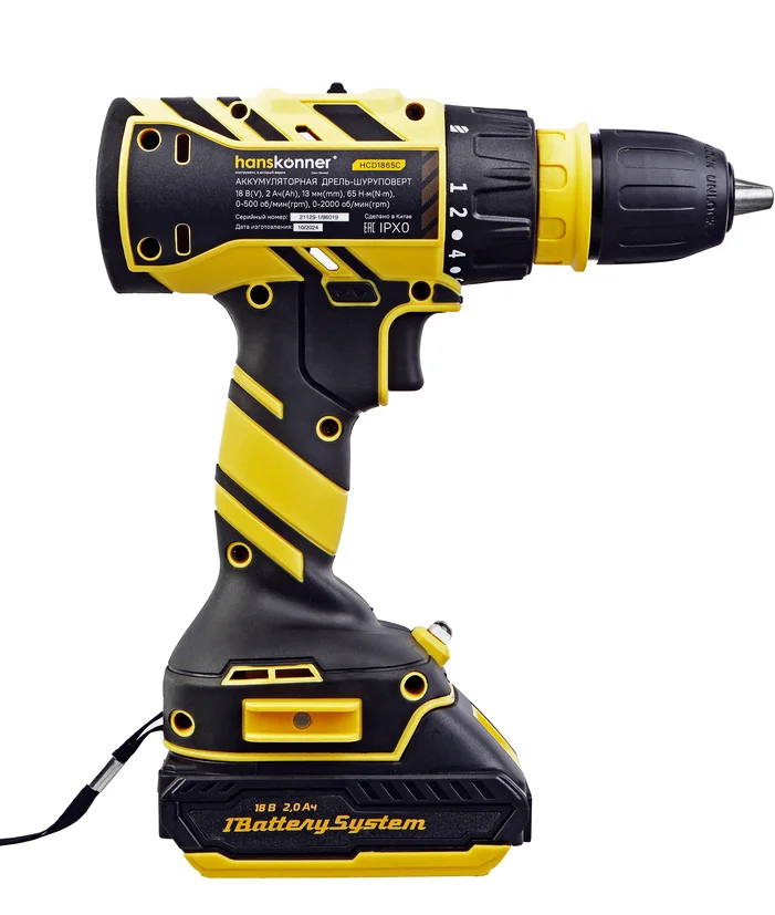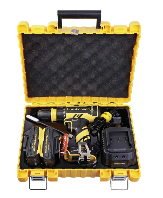 Дрель аккум. б/щ Hanskonner, 18В, 1BatterySystem, 2 акк. 2 Ач, 65Нм, смен патрон,кейс HCD1865C