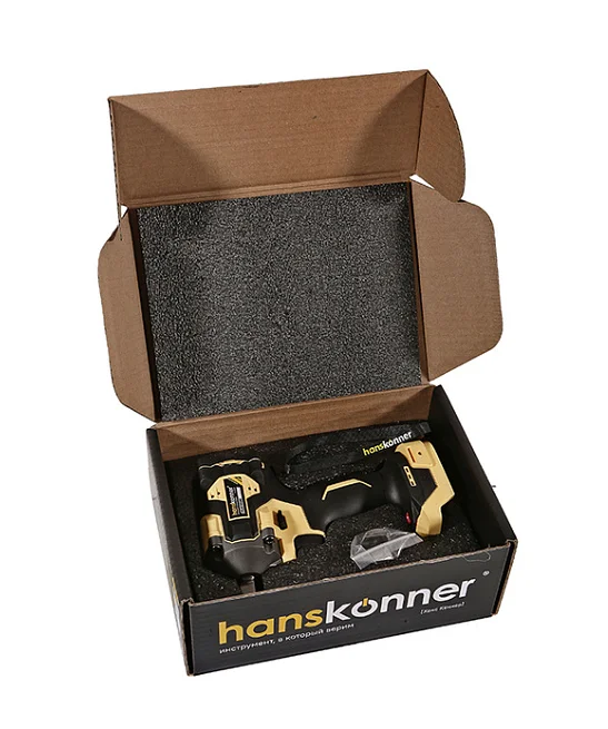 Hanskonner HCD20420BL – аккумуляторный 18 В, ударный гайковерт с наружным квадратом 1/2″ и возможностью установки оснастки под шестигранник 1/4″ – является частью системы 1BatterySystem, обеспечивающей совместимость одного и того же аккумулятора с целым рядом наименований инструмента. Модель обладает максимально сбалансированной компоновкой: небольшие размеры корпуса и рукояти позволяют эффективное использование в условиях с затрудненным доступом, а нейтральный центр тяжести, и обилие прорезиненных противоскользящих поверхностей способствуют надежному хвату, и лучшему контролю. Гайковерт оснащен 18 В бесщеточным двигателем, характеризующимся на 30% лучшей производительностью в сравнении с коллекторными аналогами. Кроме того, бесщеточный двигатель отлично справляется с кратковременными перегрузками и не склонен к перегреву. Модель Hanskonner HCD20420BL имеет два режима настройки крутящего момента: 280 Н м и 420 Н м – пользователь выбирает нужный, исходя из поставленных задач. Функция деликатного откручивания SoftMode обеспечивает максимально аккуратное откручивание прикипевшего крепежа, исключая его повреждение. К особенностям Hanskonner HCD20420BL стоит отнести электронный тормоз двигателя, эффективную LED-подсветку рабочей зоны WorkingLight с блоком коллиматорных линз, создающих направленный симметричный луч.