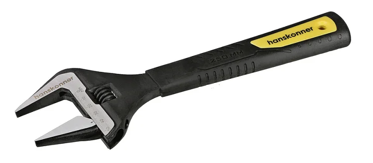 Ключ разводной 250 мм, УСИЛЕННЫЕ ТОНКИЕ ГУБКИ, обрезиненная рукоятка, Hanskonner HK1045-11-250