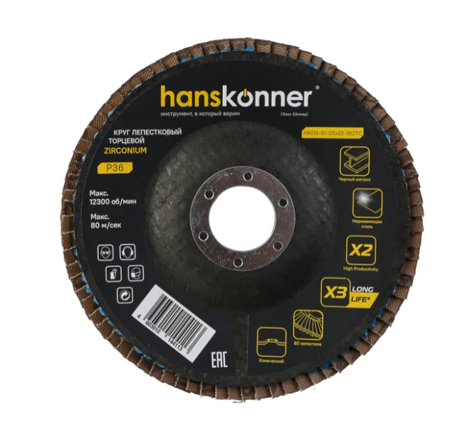 Круг зачистной лепестковый ЦИРКОНИЕВЫЙ, конический 125х22, зерно 36, Hanskonner H9010-01-125x22-36ZTC