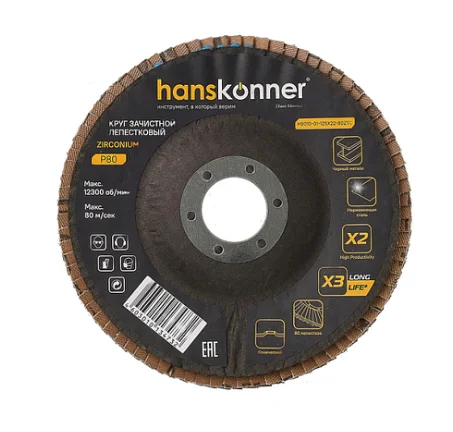 Круг зачистной лепестковый ЦИРКОНИЕВЫЙ, конический 125х22, зерно 80, Hanskonner H9010-01-125x22-80ZTC