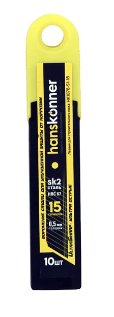 HK1076-S1-18 Лезвия 18мм,10шт,оксид.,SK2 сталь,толщ.0.5мм,15 сегм.,ULTRA лаз.заточка,Hanskonner