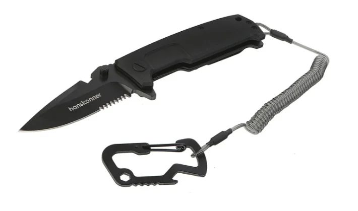 В комплектацию входит прочный страховочный трос с металлической жилой для защиты от случайной потери ножа