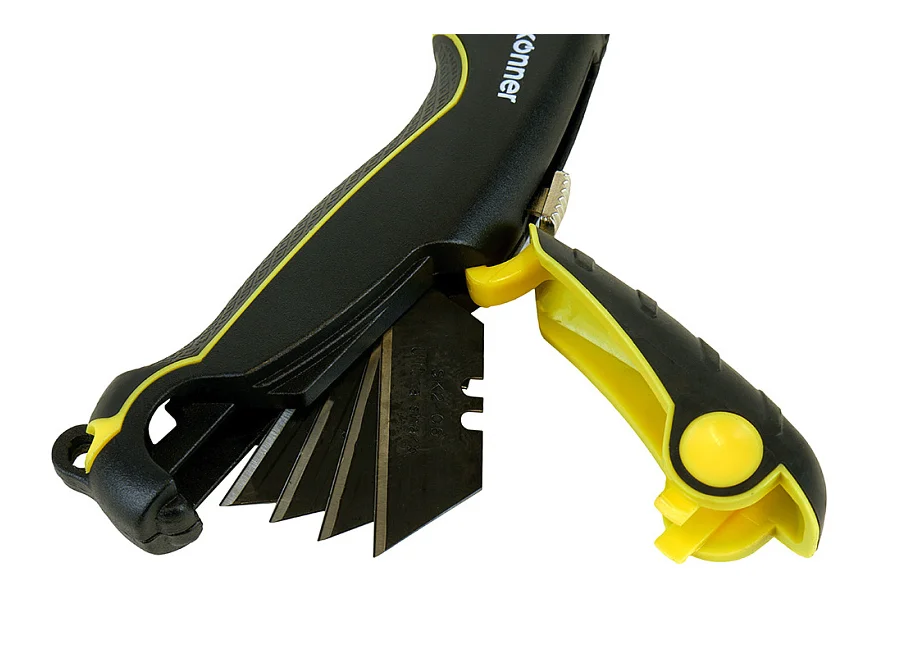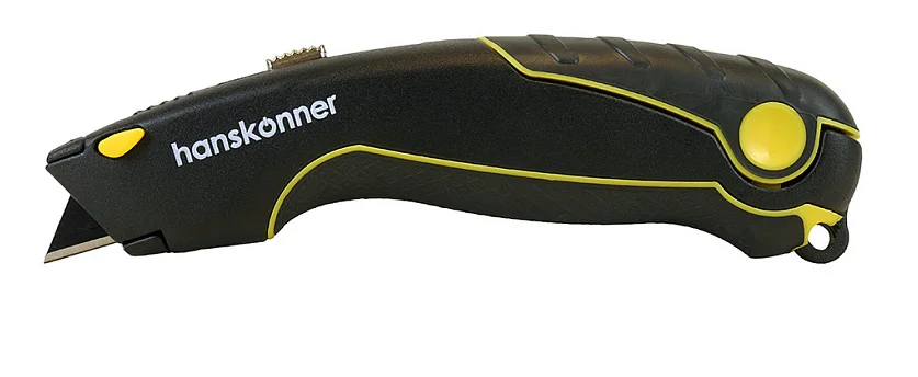 Нож, трапециевидное лезвие, 4 доп. лезвия, SK2, TPR рукоятка, Hanskonner HK1076-01-P2