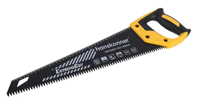 Ножовка по дереву, 450мм, 4 TPI, SK5, 3D зуб, тефлон, быстрый рез, Hanskonner HK1060-02-4504