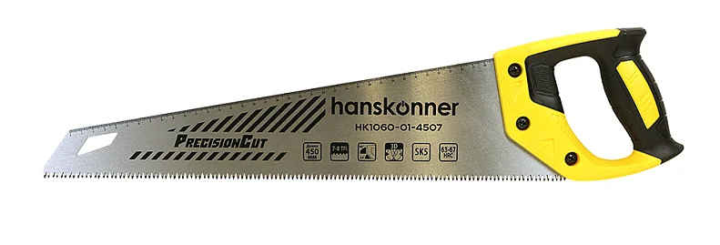 Ножовка по дереву, 450мм, 7-8 TPI, SK5, 3D зуб, чистый рез, Hanskonner HK1060-01-4507