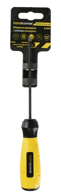 Отвертка шлицевая 3x100 АЛМАЗН. НАКОНЕЧ, твердость 59 HRC, S2, Hanskonner HK1040-16-SL3-100