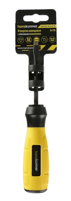 Отвертка шлицевая 5x75 АЛМАЗН. НАКОНЕЧ, твердость 59 HRC, S2, Hanskonner HK1040-16-SL5-75